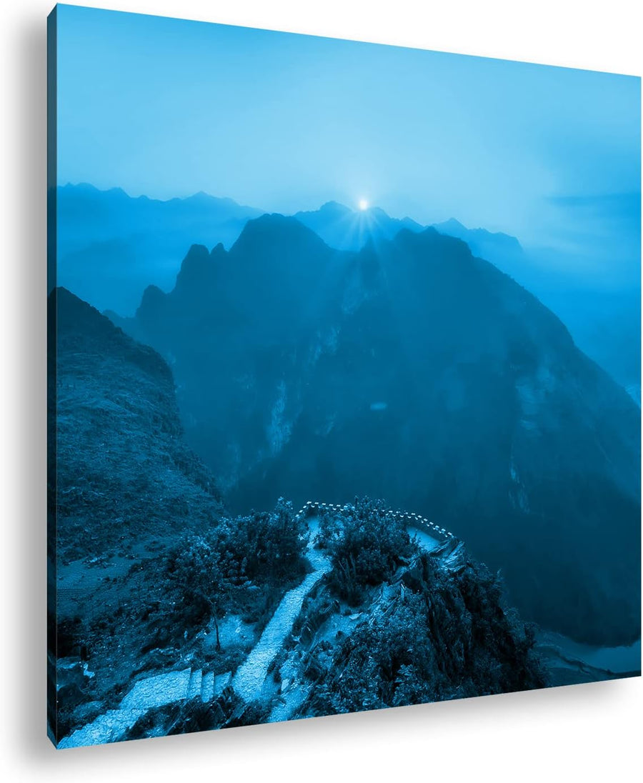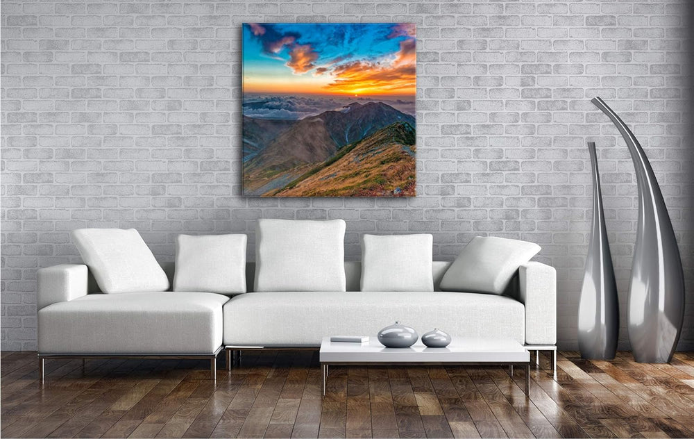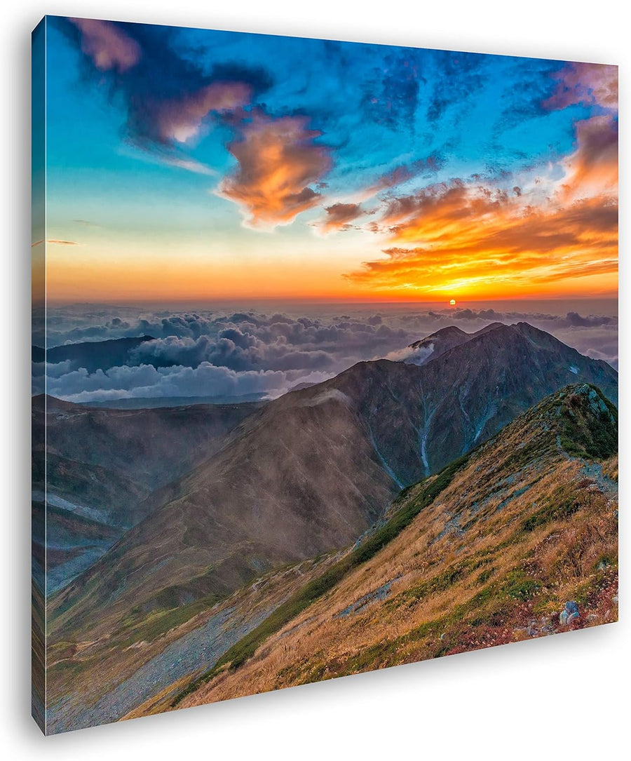 Farbenfroher Sonnenuntergang in den Bergen Format: 70x70 als Leinwand, Motiv fertig gerahmt auf Echt