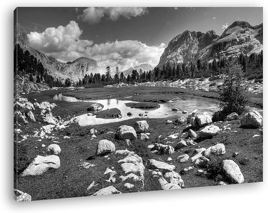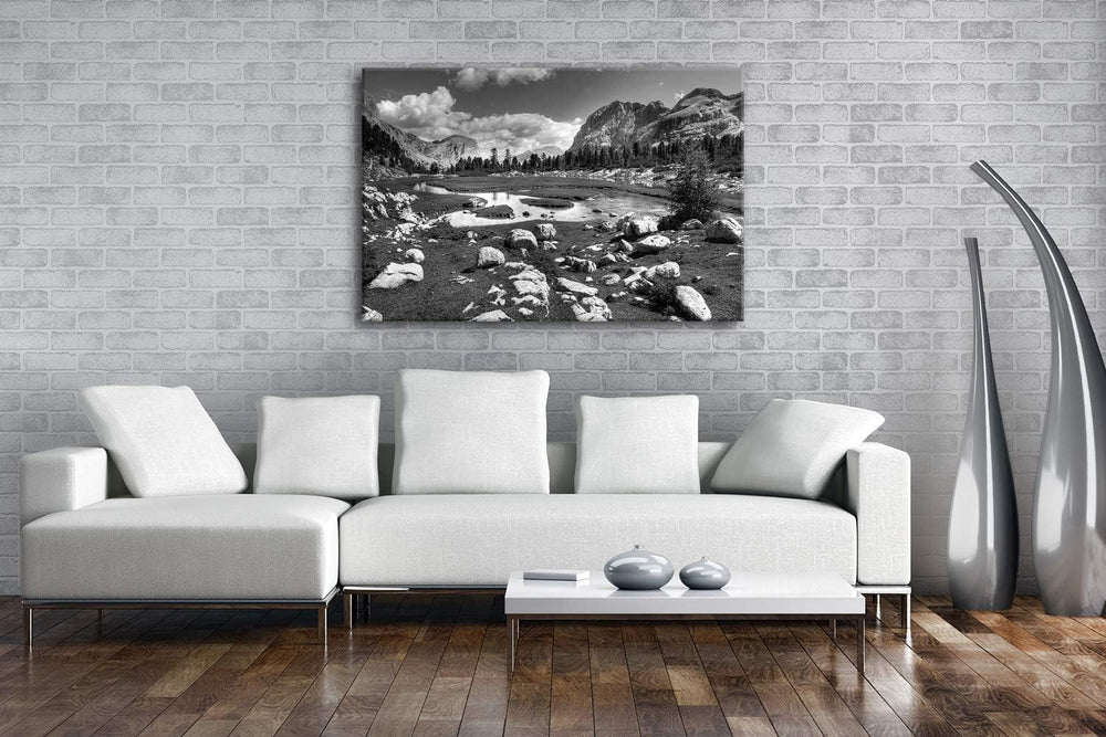 Fluss in den Bergen Format: 80x60 Effekt: Schwarz&Weiss als Leinwandbild, Motiv fertig gerahmt auf E