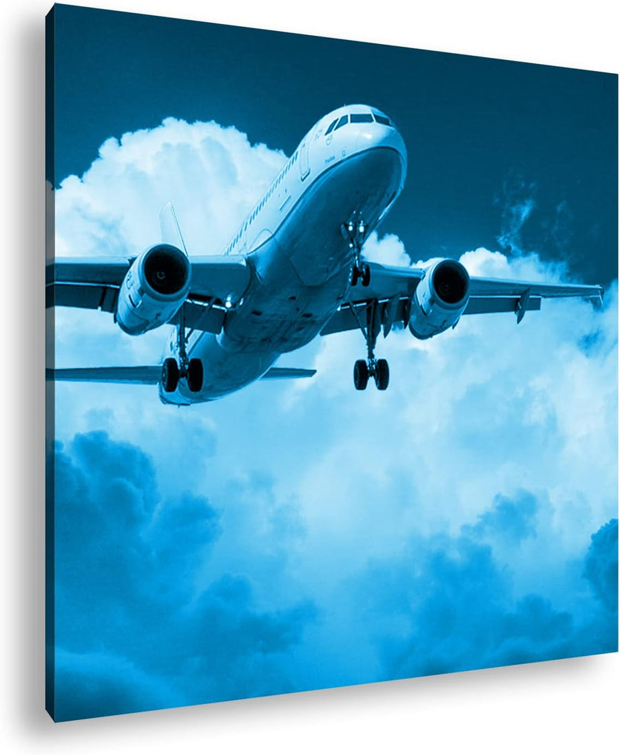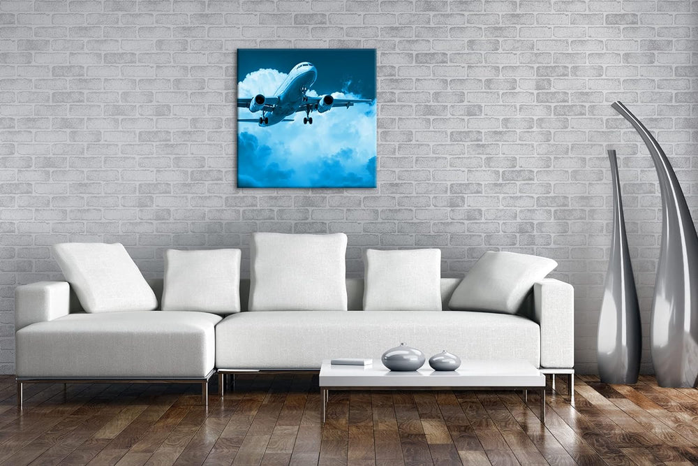 Flugzeit in den Wolken im Format: 60x60 Effekt: Zeichnung als Leinwandbild, Motiv auf Echtholzrahmen