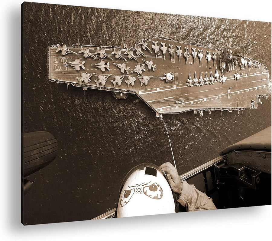 Flugzeugträger der Marine Format: 80x60 Effekt: Sepia als Leinwandbild, Motiv fertig gerahmt auf Ech