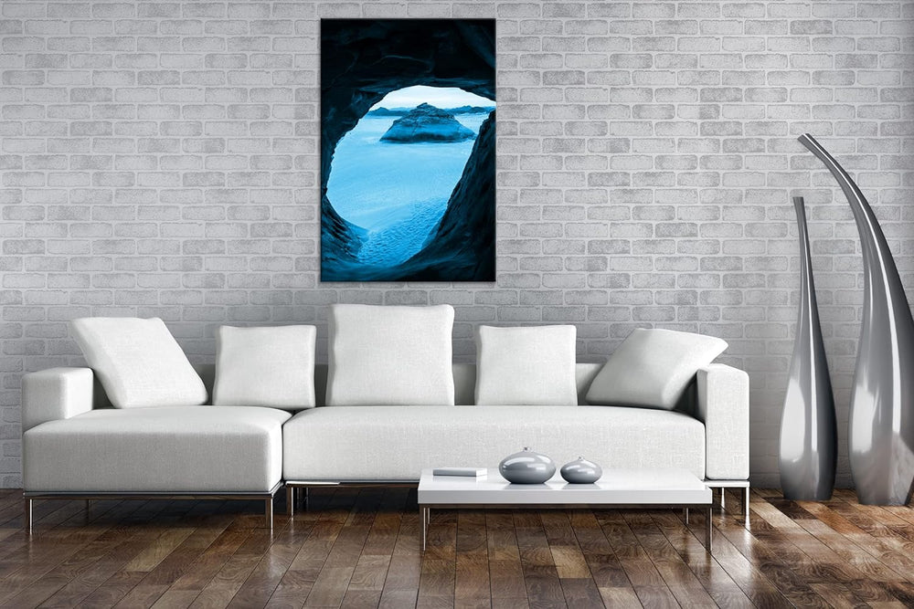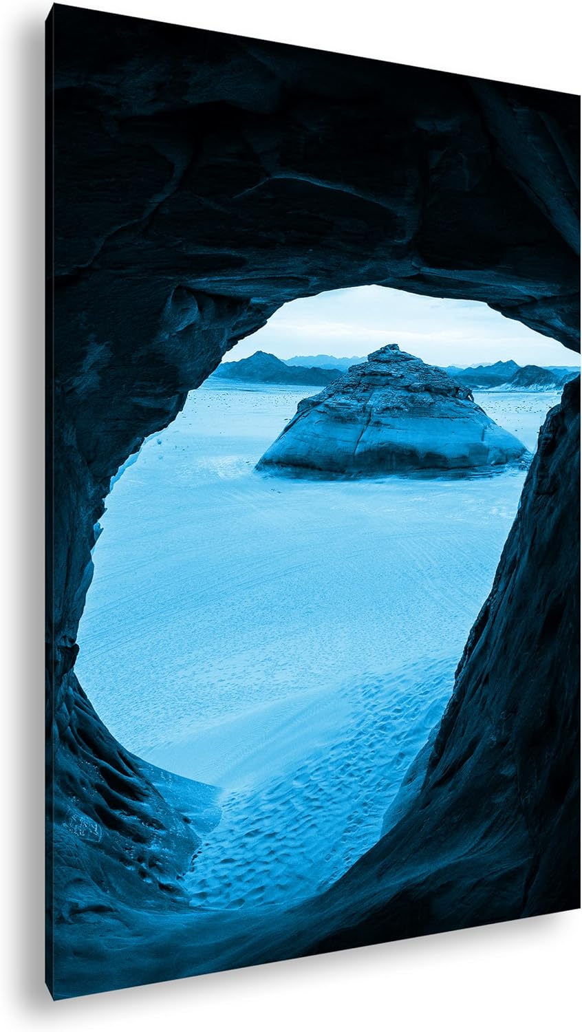 Felsen in der Wüste Format 80x60 Effekt: Monocrome Blau als Leinwandbild, Motiv fertig gerahmt auf E