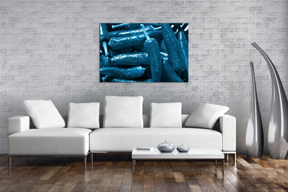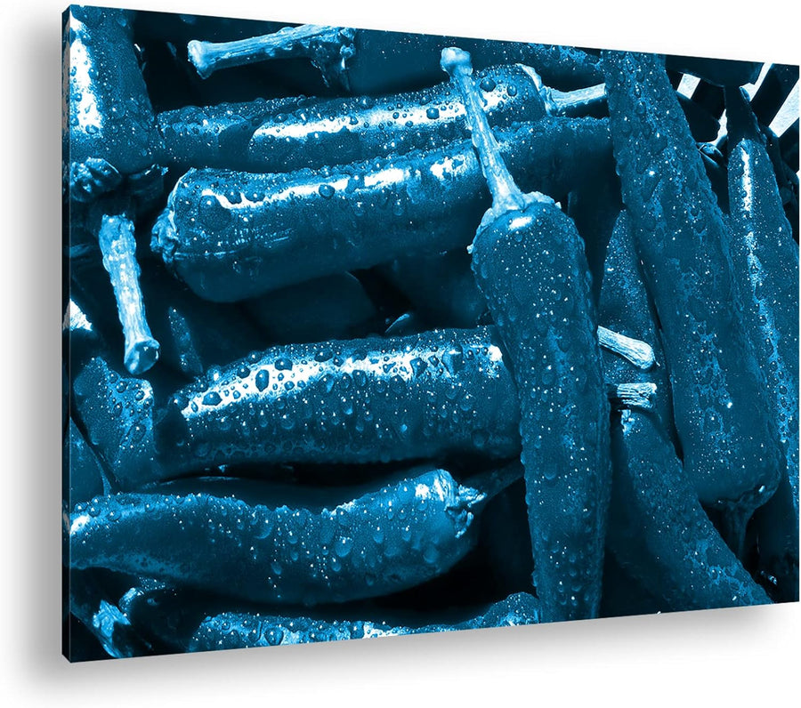 extrem scharfe Peperoni Format 100x70 Effekt: Monocrome Blau als Leinwandbild, Motiv fertig gerahmt