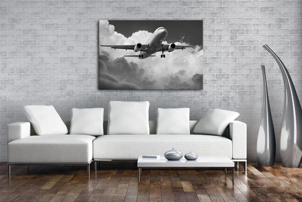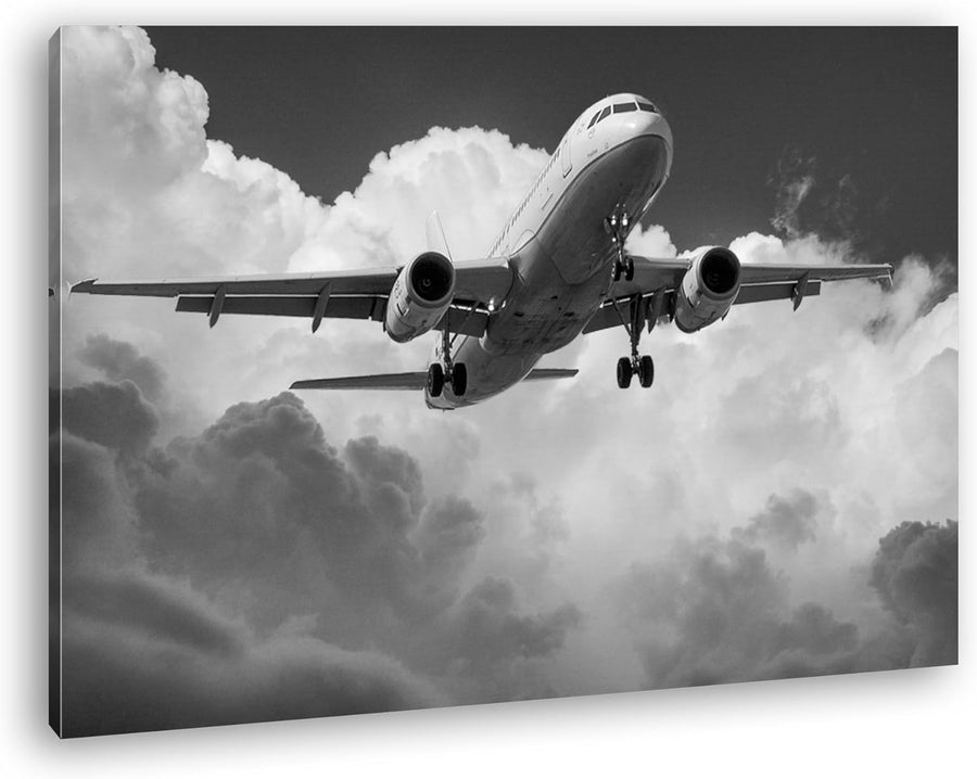 Flugzeit in den Wolken Effekt: Schwarz/Weiss im Format: 80x60 als Leinwandbild, Motiv fertig gerahmt
