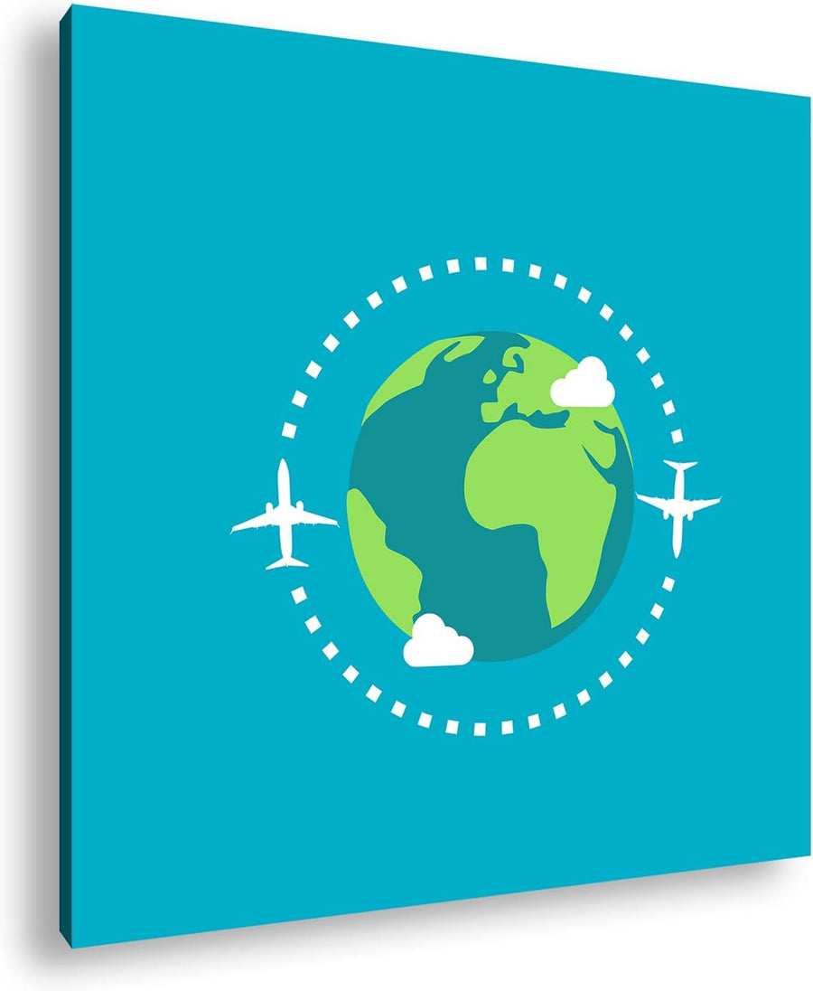 Flugzeug um die Erde Logo Format: 60x60 als Leinwandbild, Motiv fertig gerahmt auf Echtholzrahmen, H