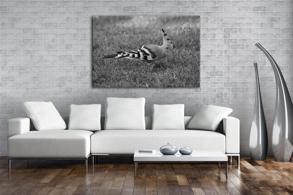 exotischer Wiedehopf Effekt: Schwarz/Weiss im Format: 80x60 als Leinwandbild, Motiv fertig gerahmt a