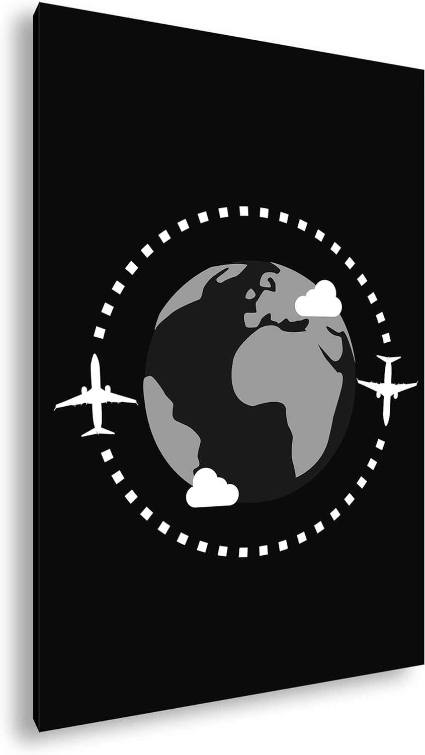 Flugzeug um die Erde Logo Format: 80x60 Effekt: Schwarz&Weiss als Leinwandbild, Motiv fertig gerahmt