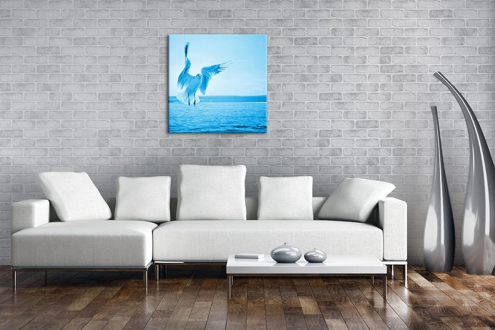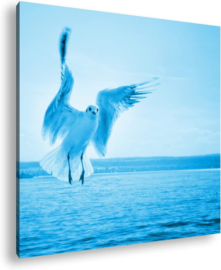 Fliegende Möwe über dem Bodensee im Format: 70x70 Effekt: Zeichnung als Leinwandbild, Motiv auf Echt