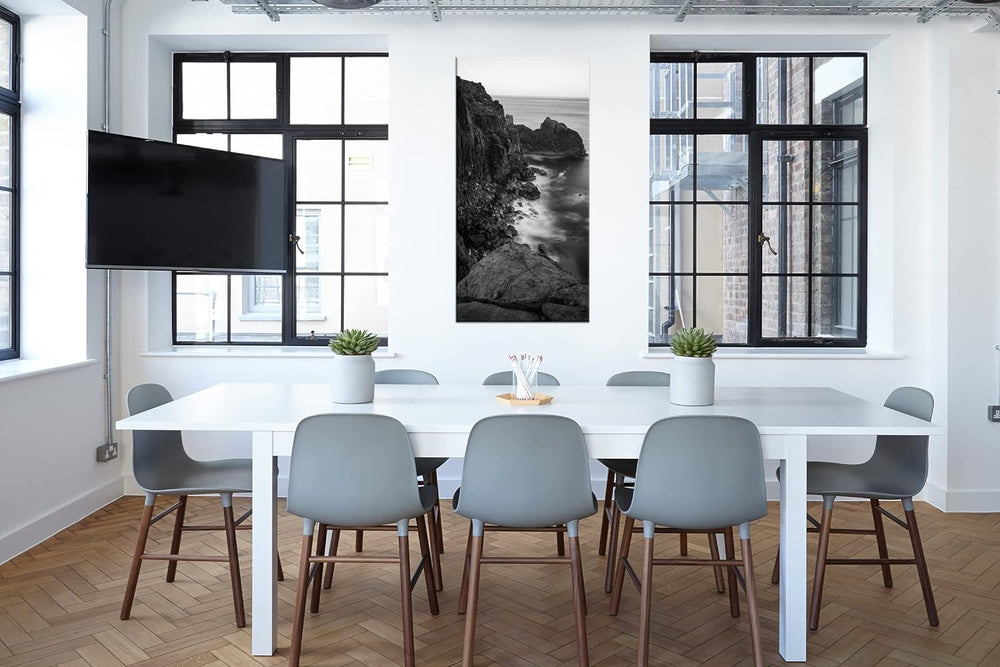 felsiger Abgrund ins Meer Panorama 100x50 cm Effekt: Schwarz/Weiss als Leinwandbild, Motiv fertig ge