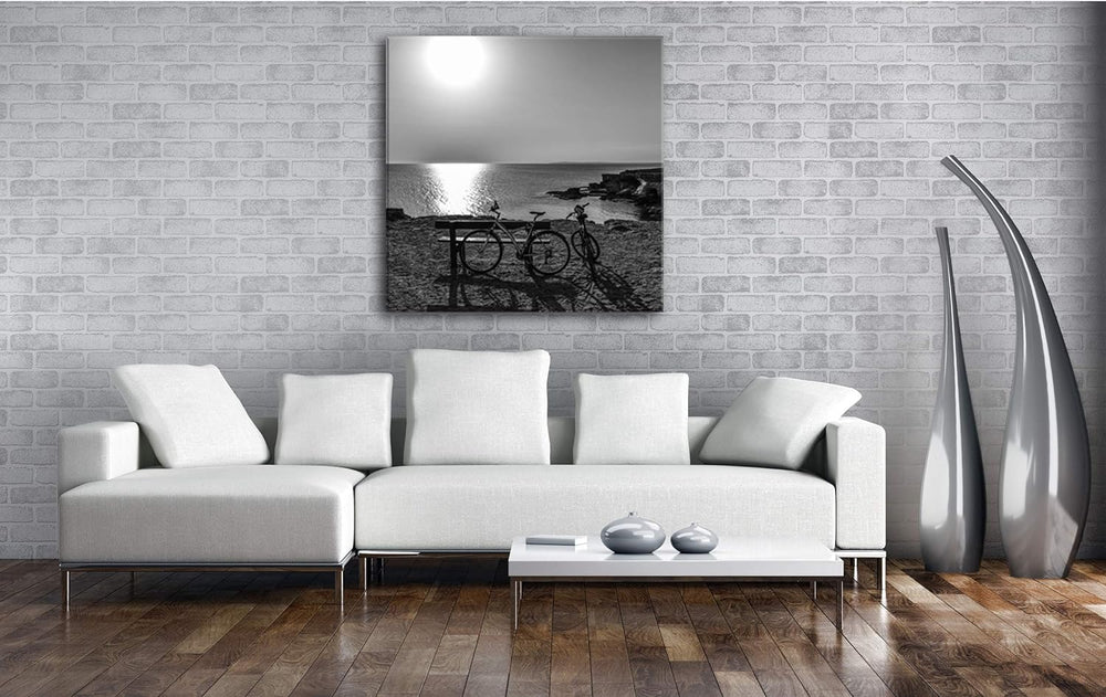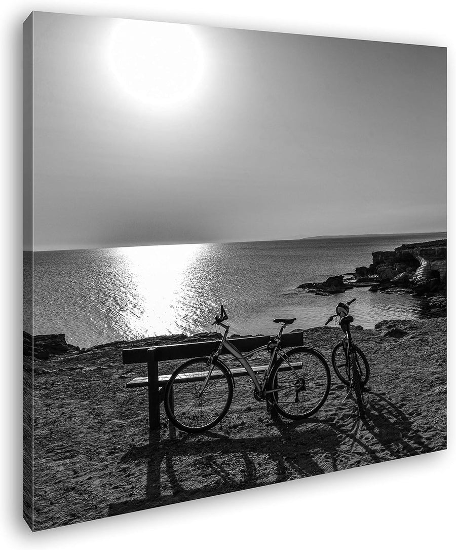 Fahrrad Tour an der Küste Format: 70x70 Effekt: Schwarz&Weiss als Leinwandbild, Motiv fertig gerahmt