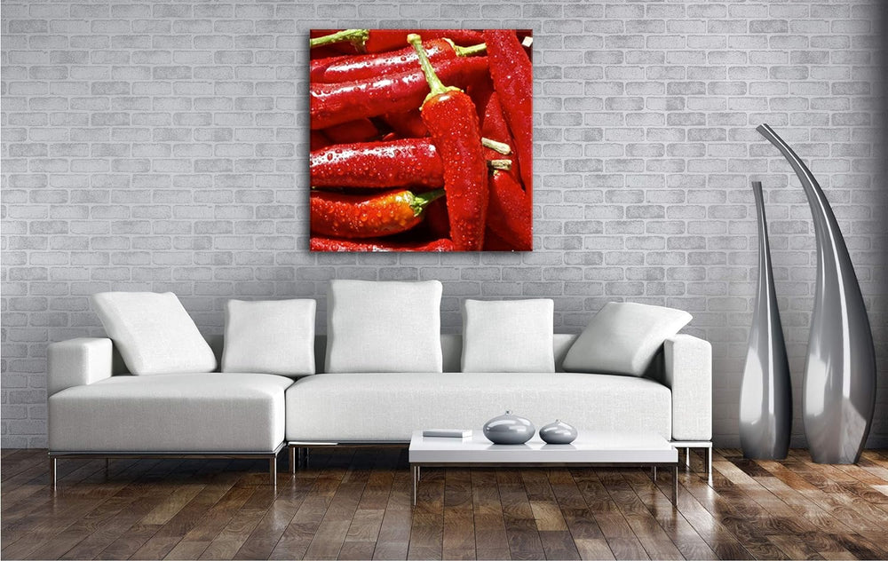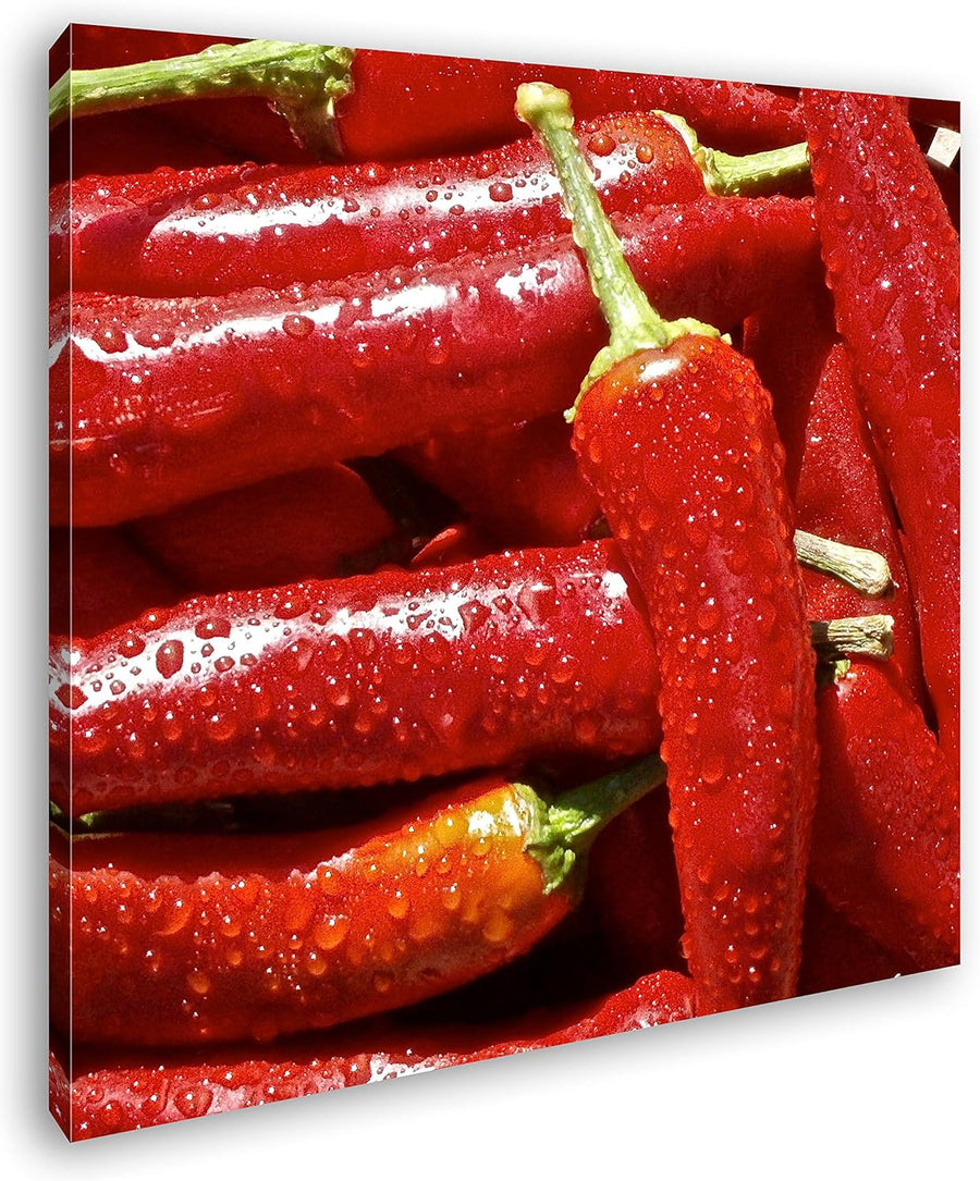 extrem scharfe Peperoni Format: 70x70 als Leinwandbild, Motiv fertig gerahmt auf Echtholzrahmen, Hoc