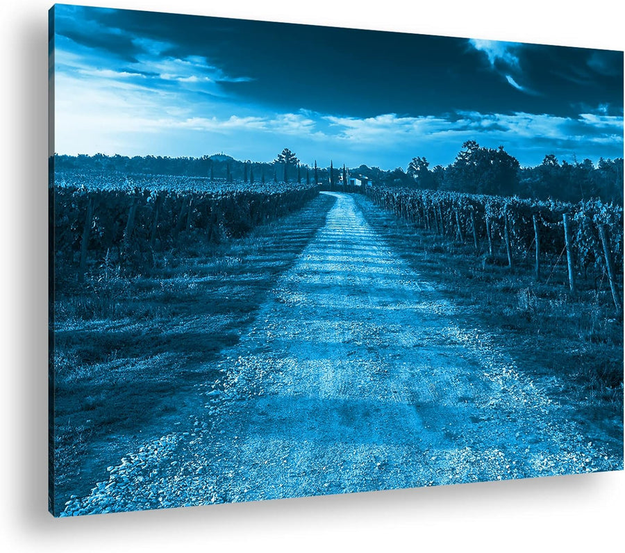 Feldweg in der Toskana Format 80x60 Effekt: Monocrome Blau als Leinwandbild, Motiv fertig gerahmt au