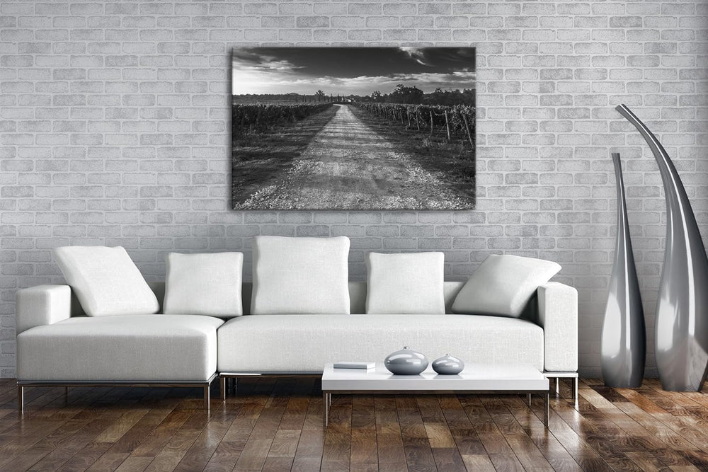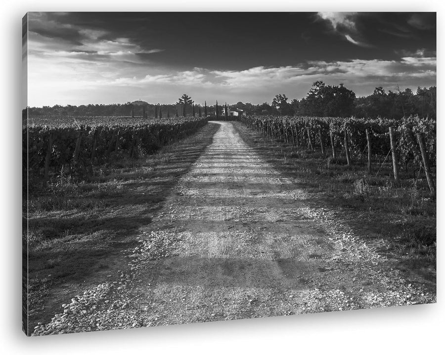 Feldweg in der Toskana Effekt: Schwarz/Weiss Format: 100x70 als Leinwandbild, Motiv fertig gerahmt a