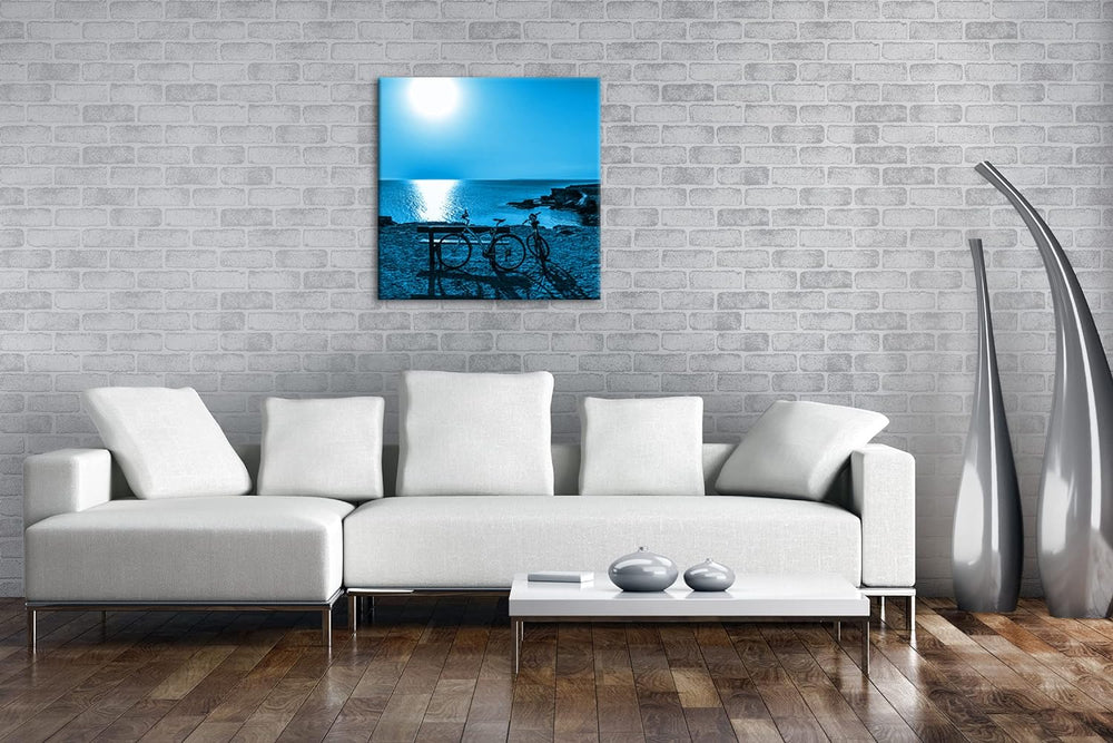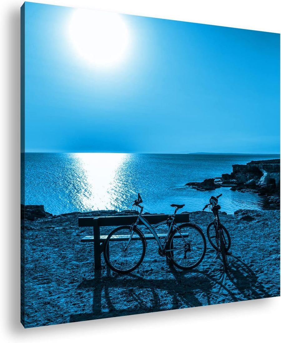 Fahrrad Tour an der Küste Format: 60x60 Effekt: Monocrome Blau als Leinwand, Motiv fertig gerahmt au