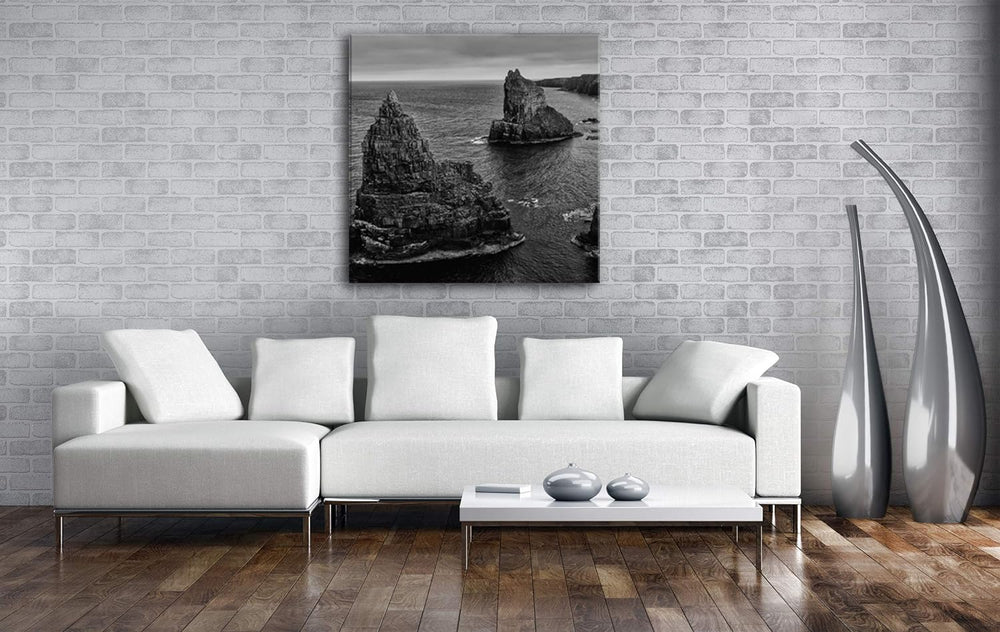 Felsen an der Küste von Schottland Format: 70x70 Effekt: Schwarz&Weiss als Leinwandbild, Motiv auf E