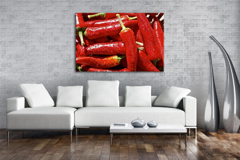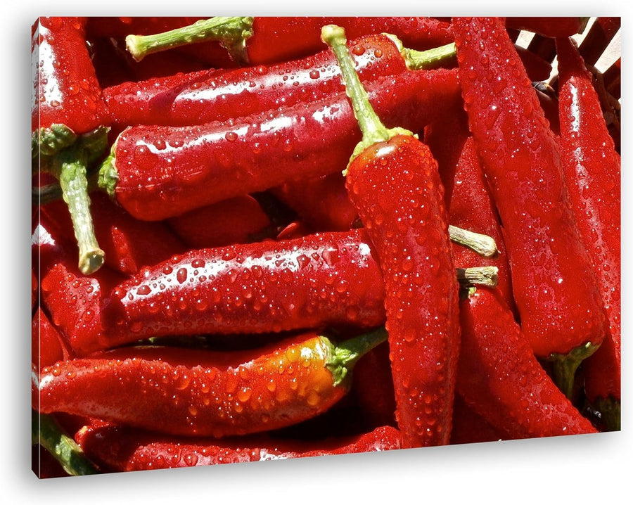 extrem scharfe Peperoni Format: 100x70 als Leinwandbild, Motiv fertig gerahmt auf Echtholzrahmen, Ho
