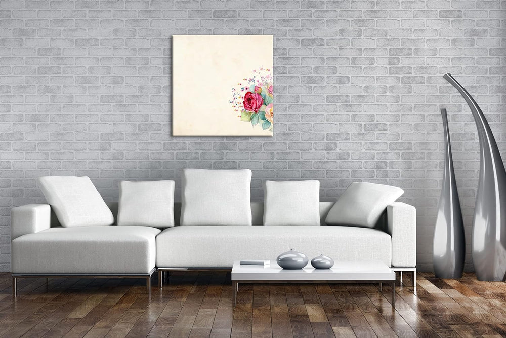farbenfroher Blumenstrauss Format: 60x60 als Leinwandbild, Motiv fertig gerahmt auf Echtholzrahmen,