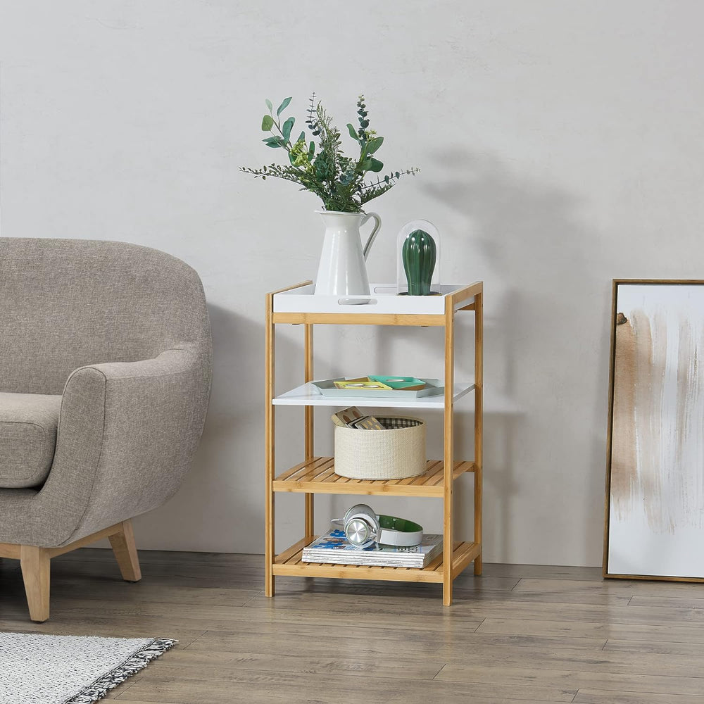 [en.casa] Bambus Standregal Lestijärvi Badregal 4 Ablagen 80 x 23 x 23 cm Eckregal stehend Natur