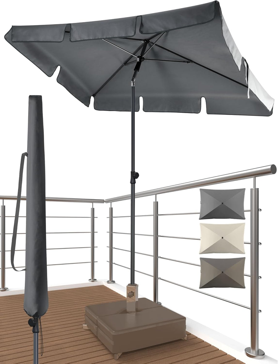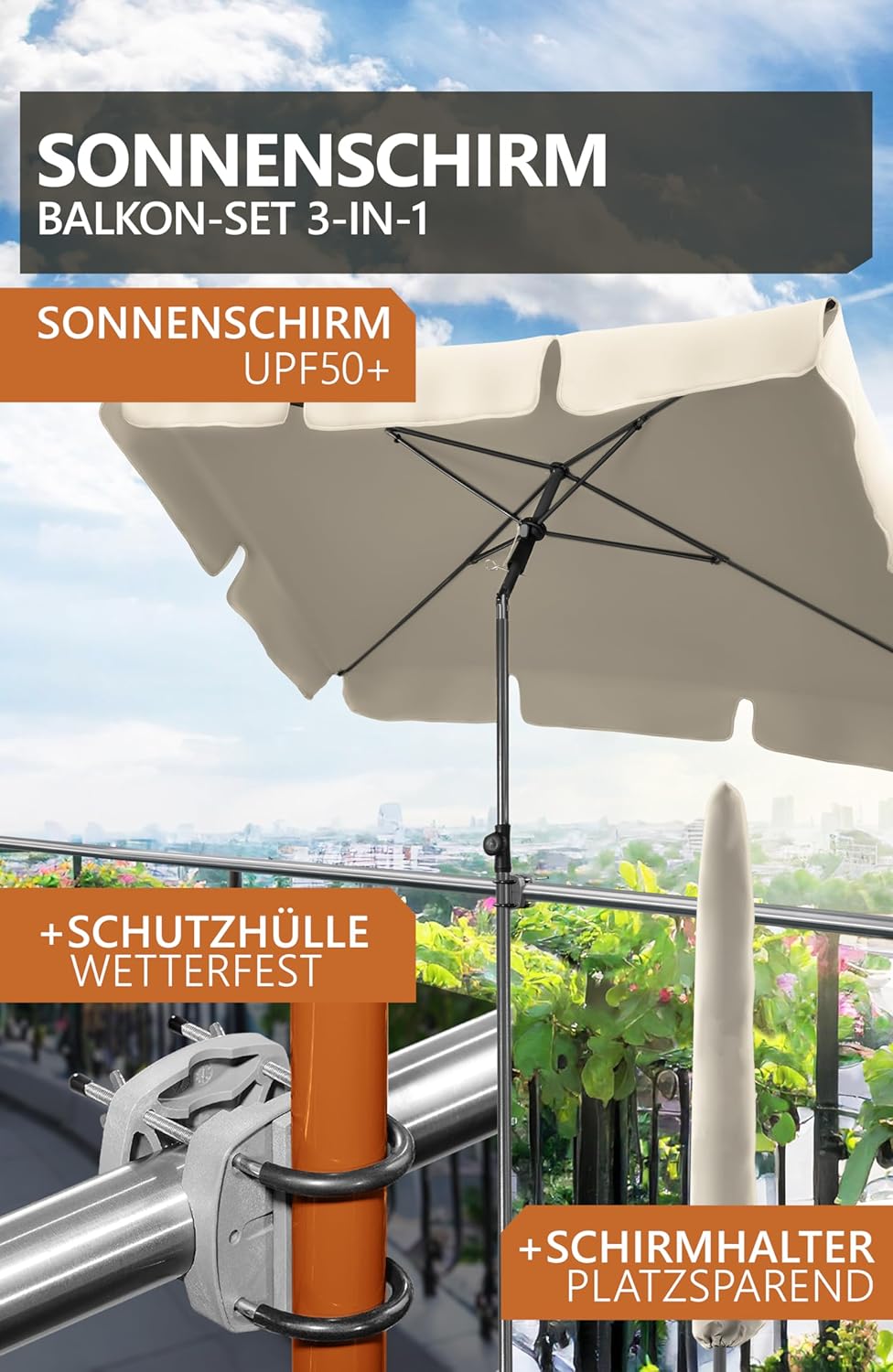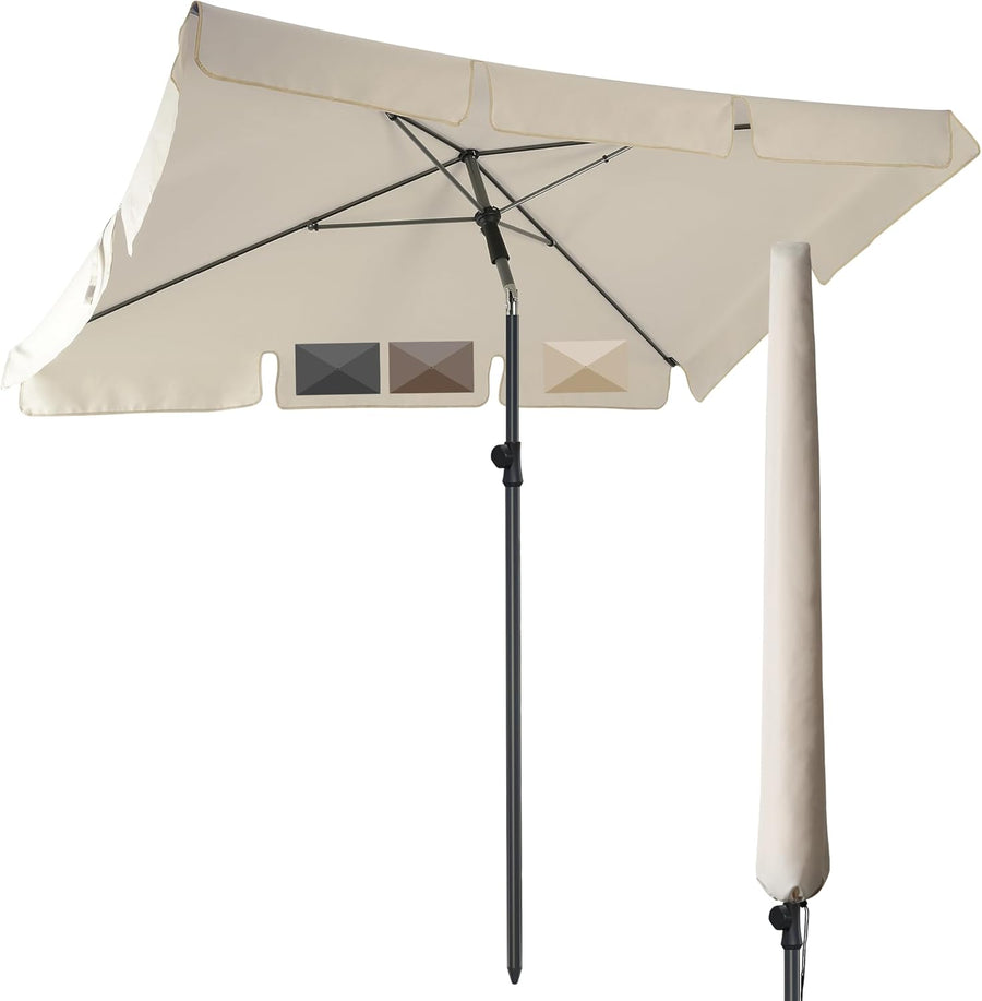 Sonnenschirm Balkon 200x125 cm mit Schirmhülle, Beige - UV50+ Sonnenschirm rechteckig knickbar höhen