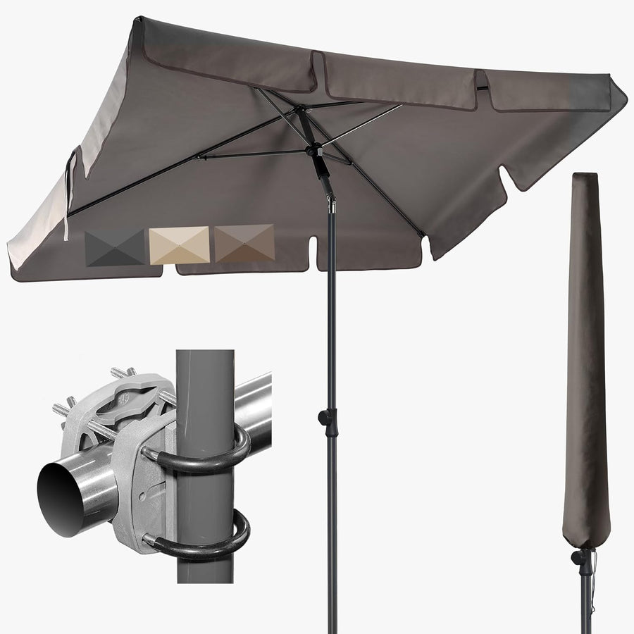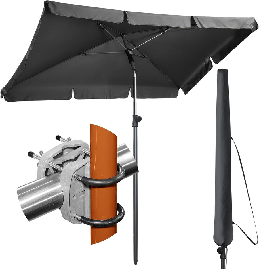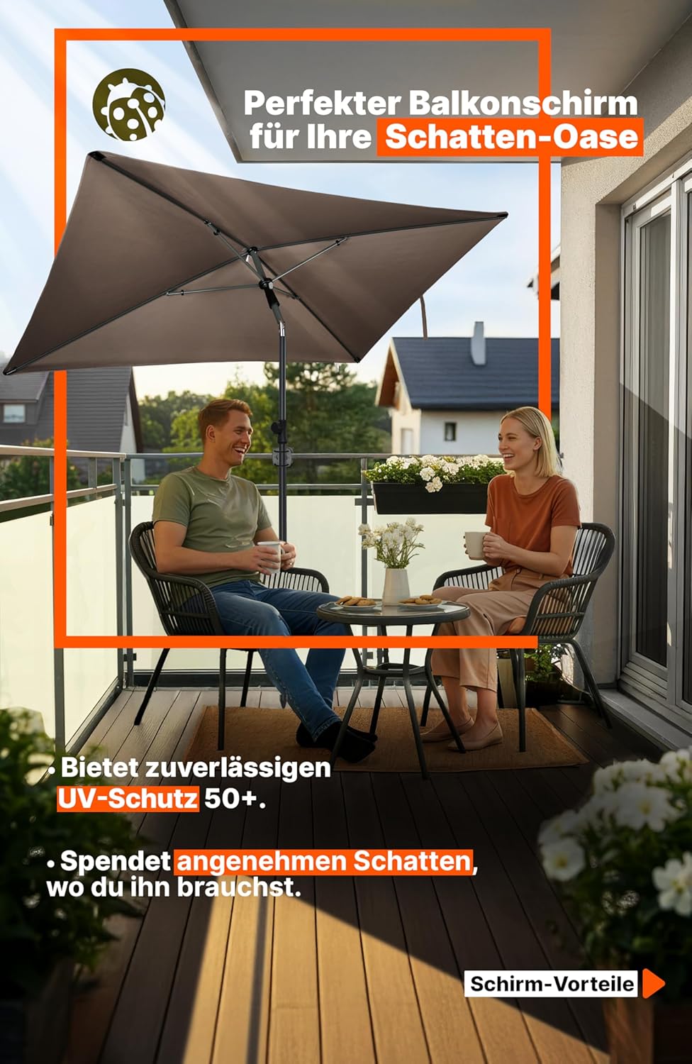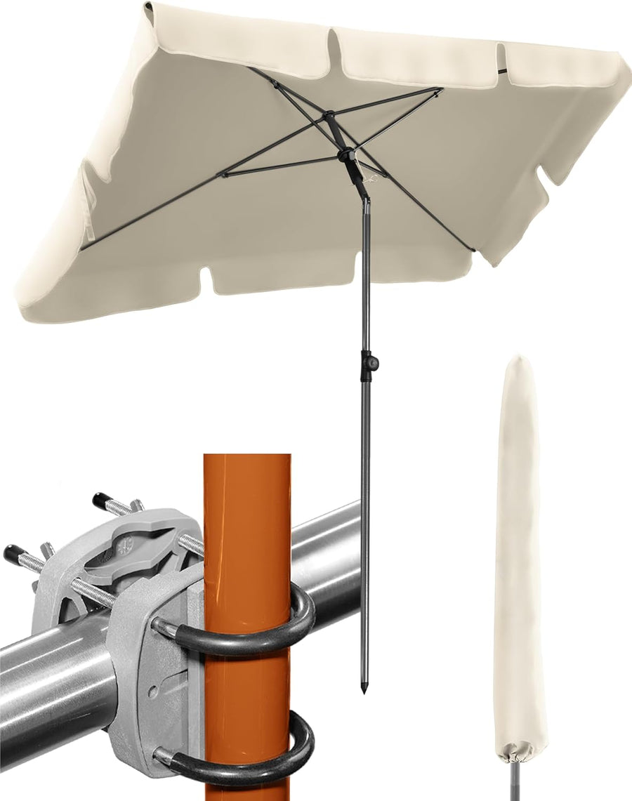 Sonnenschirm Balkon 200x125 cm mit Schirmhülle, Beige - UV50+ Sonnenschirm rechteckig knickbar höhen