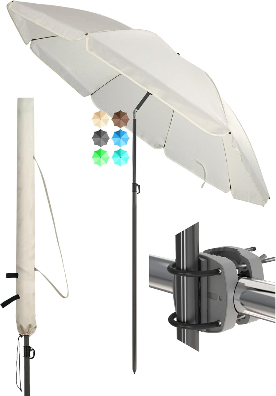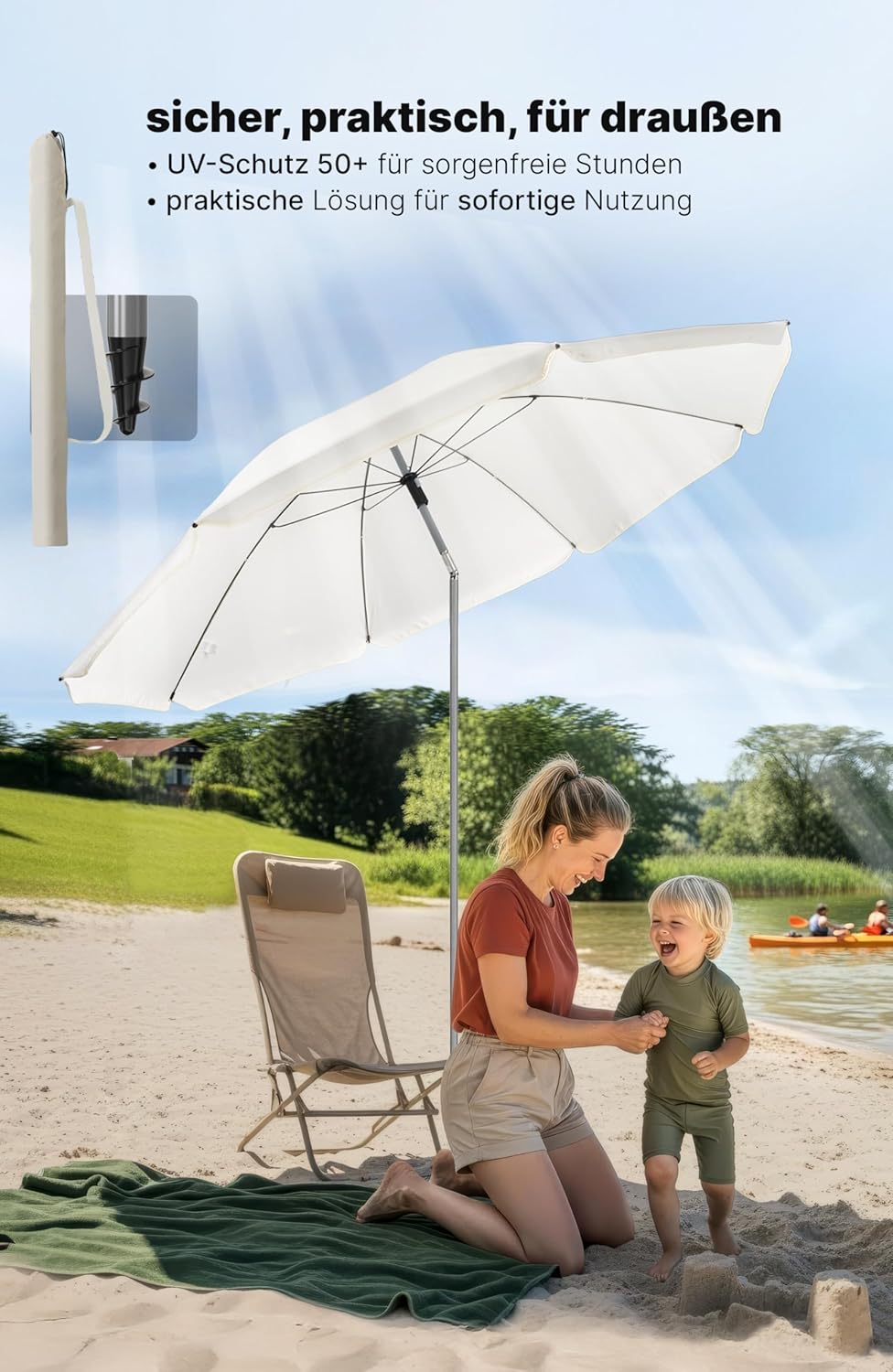 4smile Sonnenschirm Strand SunnyJoy, Beige - UPF 50+ Strandschirm Ø 180 cm, sicherer Sonnenschutz St