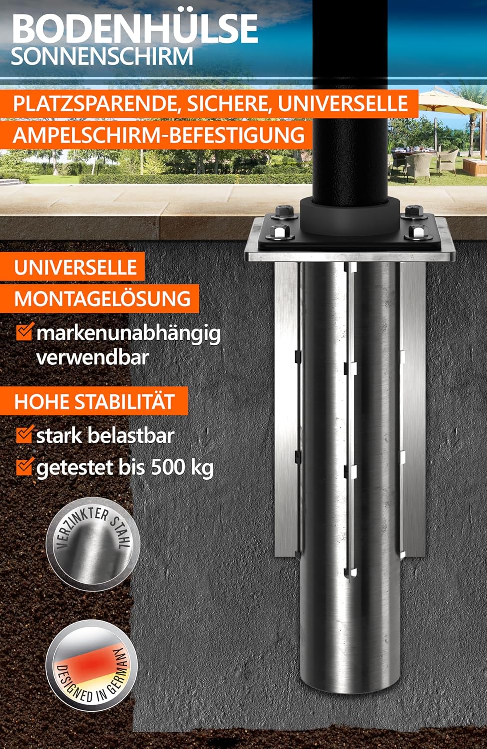 4smile Bodenhülse Sonnenschirm - Rostfreier Bodenanker Sonnenschirm SunnyBase zum Einbetonieren, bis