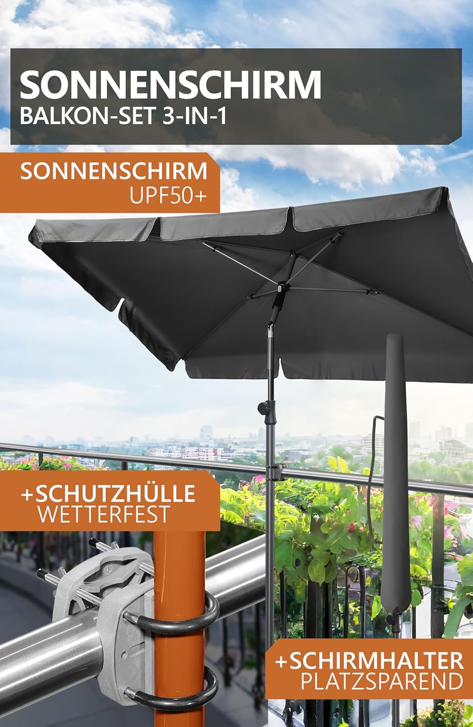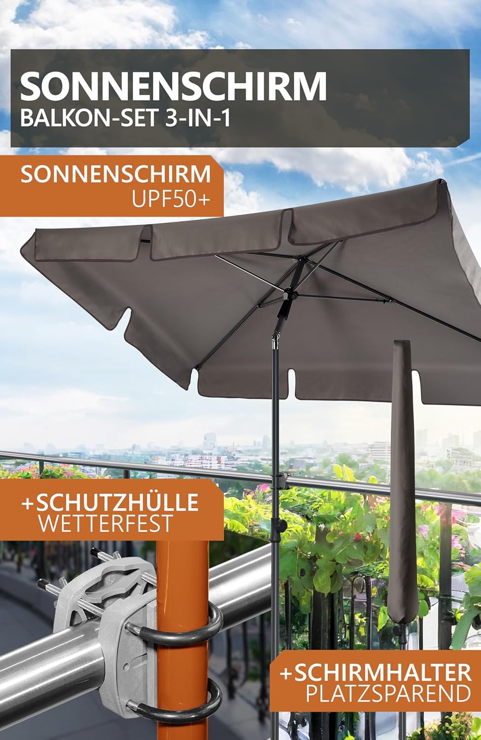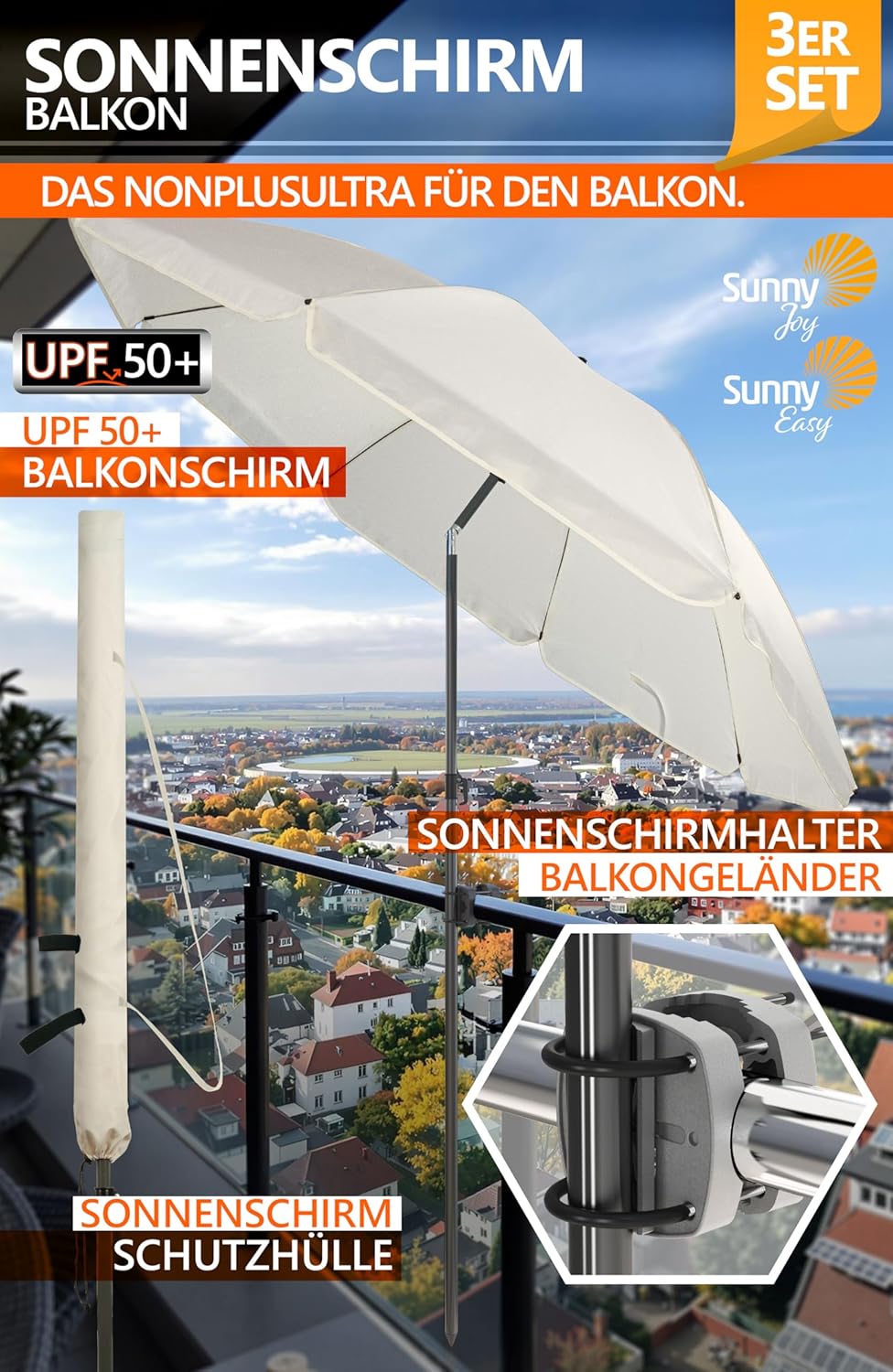 4smile Sonnenschirm Balkon SunnyJoy im 3er-Set - UPF 50+ Balkon Schirm 180 cm + Sonnenschirmhalter B