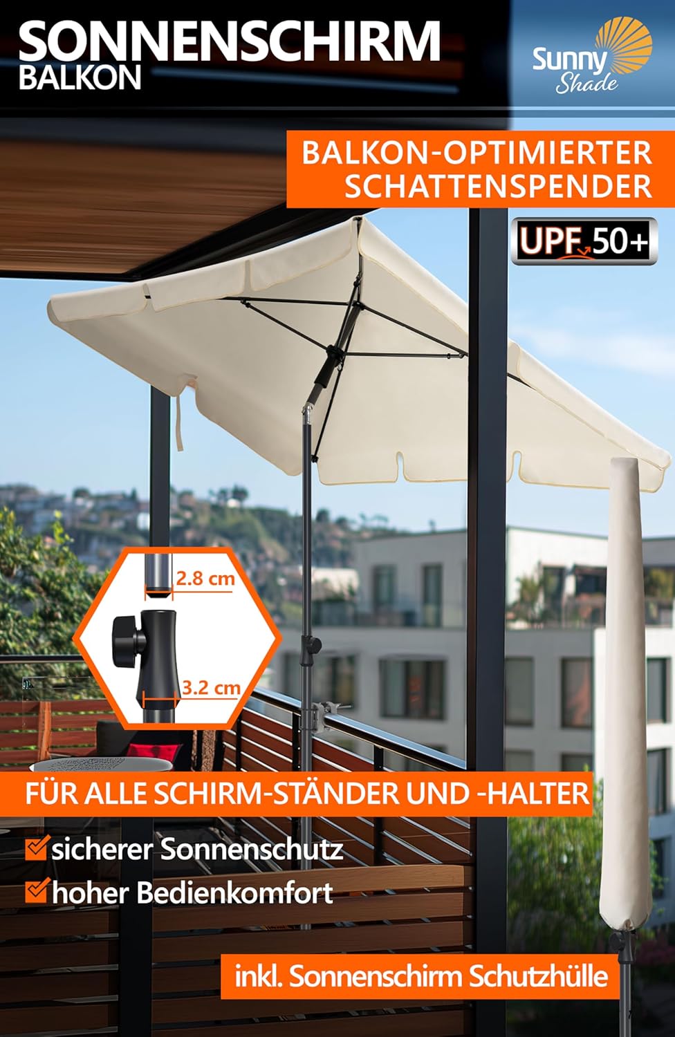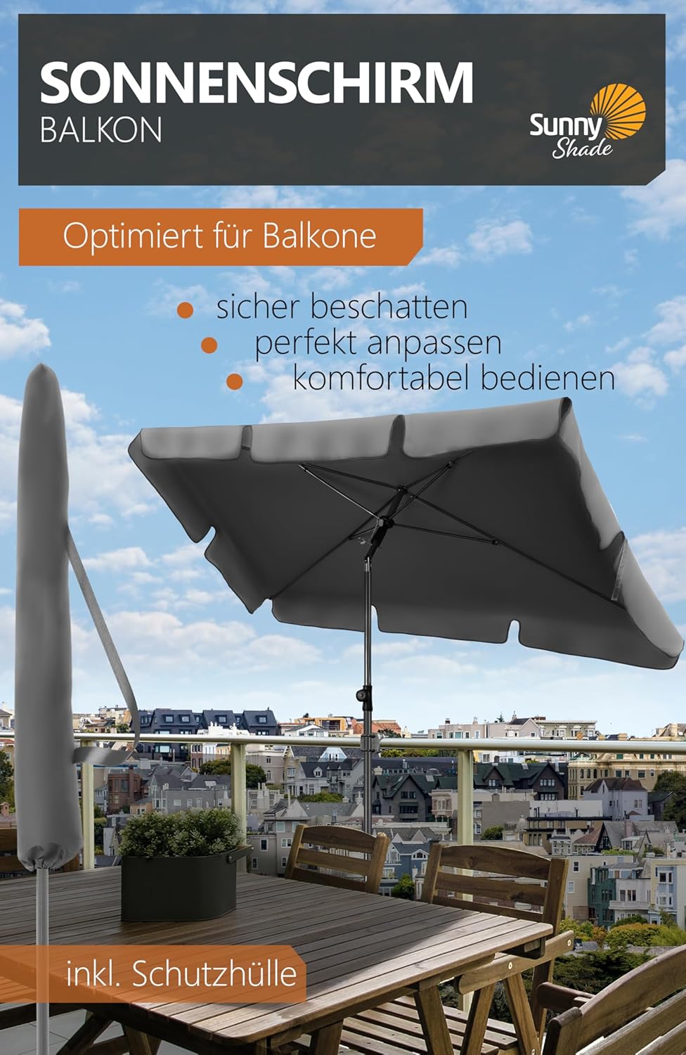 4smile Sonnenschirm Balkon SunnyShade Plus, mit Sonnenschirm Schutzhülle - Sonnnenschutz Balkon SET,
