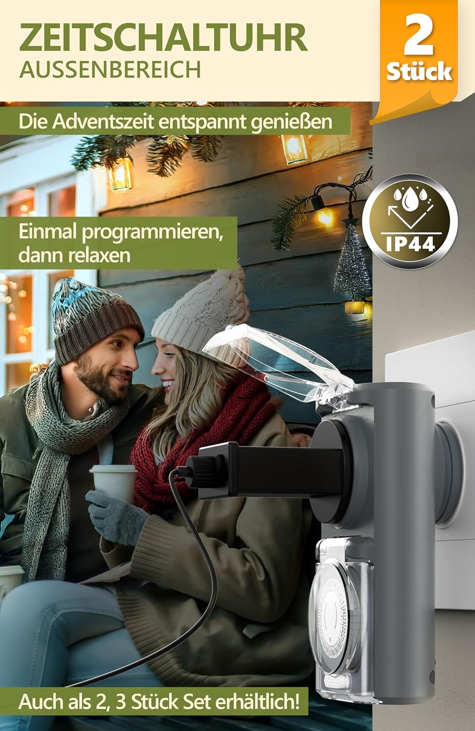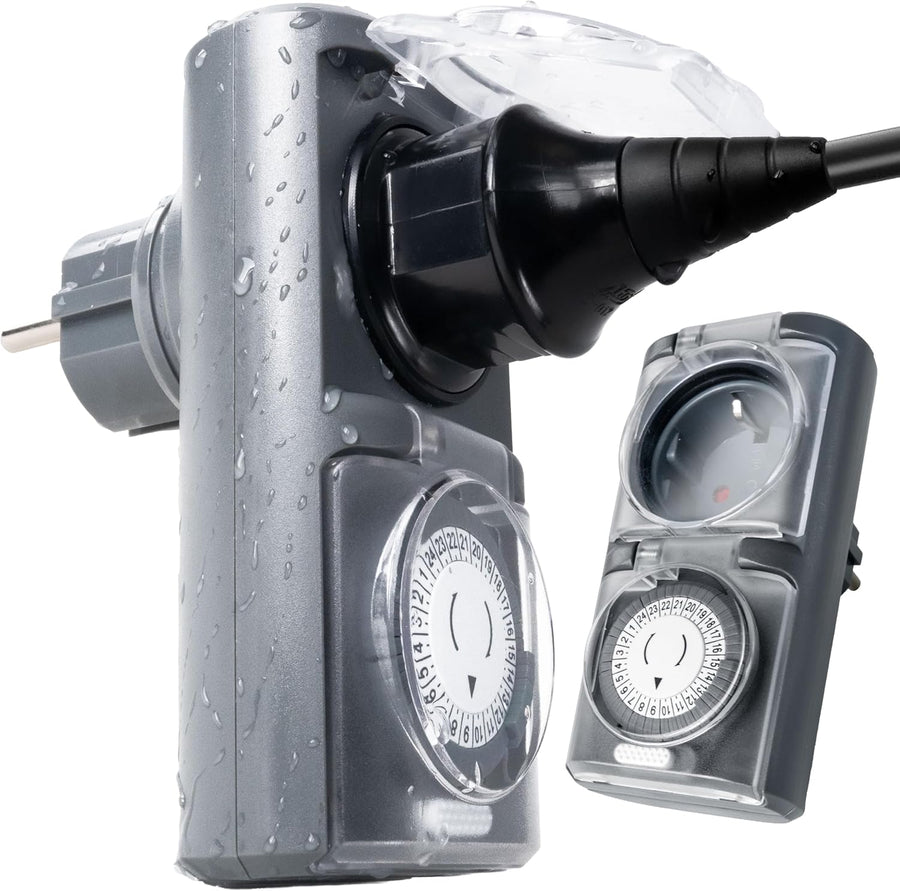 4smile Zeitschaltuhr Aussenbereich, 2er Set - Mechanische IP44 Zeitschaltuhr Steckdose Outdoor mit h