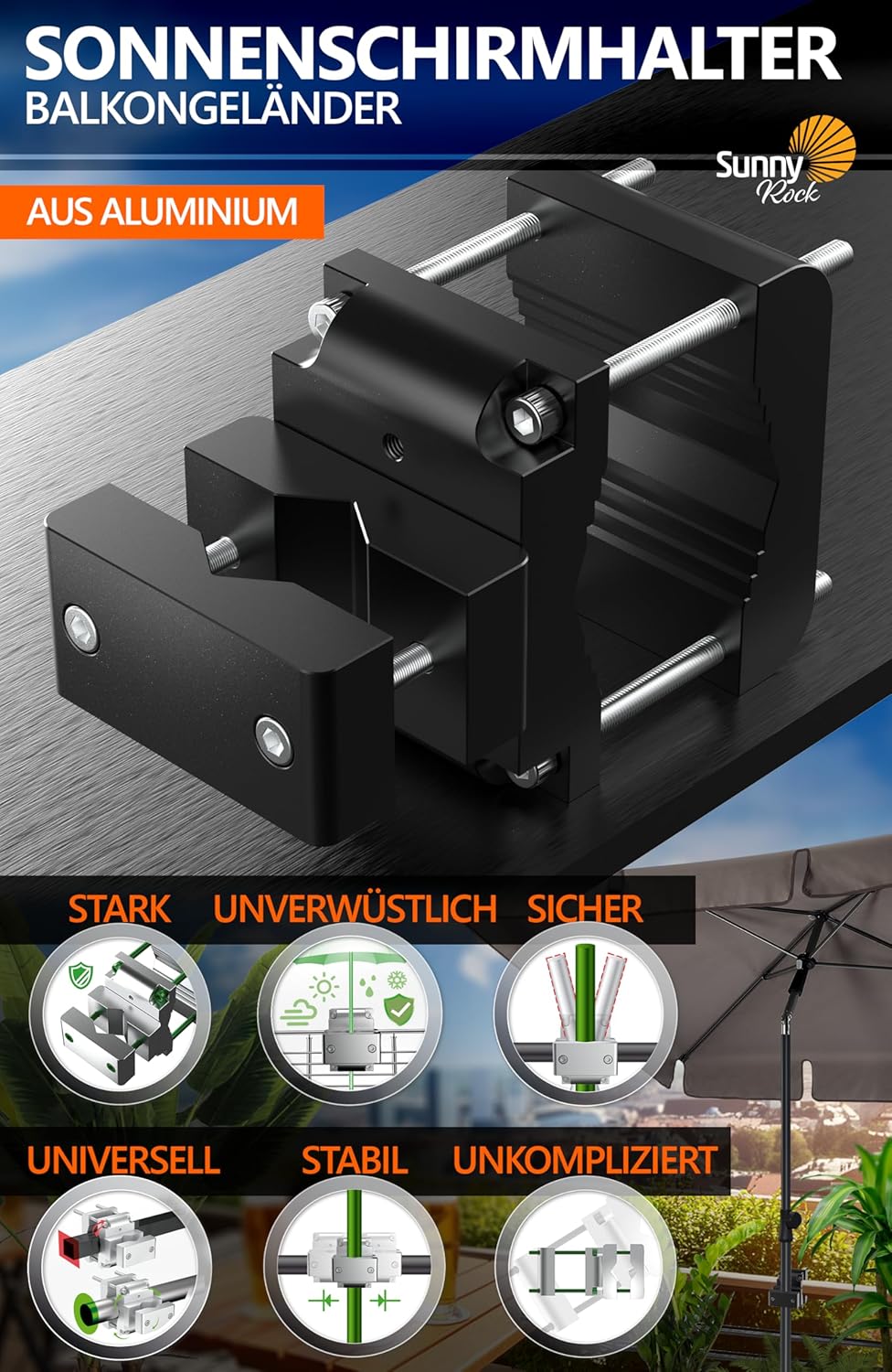 4smile Sonnenschirmhalter Balkongeländer Aluminium – Sonnenschirmständer-Ersatz SunnyRock extrem sta