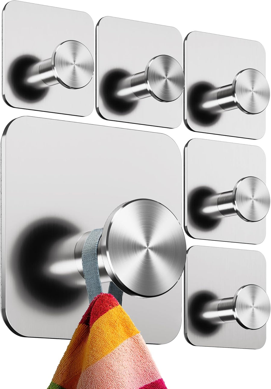 4smile Klebehaken - 6er Set Edelstahl MZ Design - Handtuchhaken für Bad und Küche Modern - 6er Set S