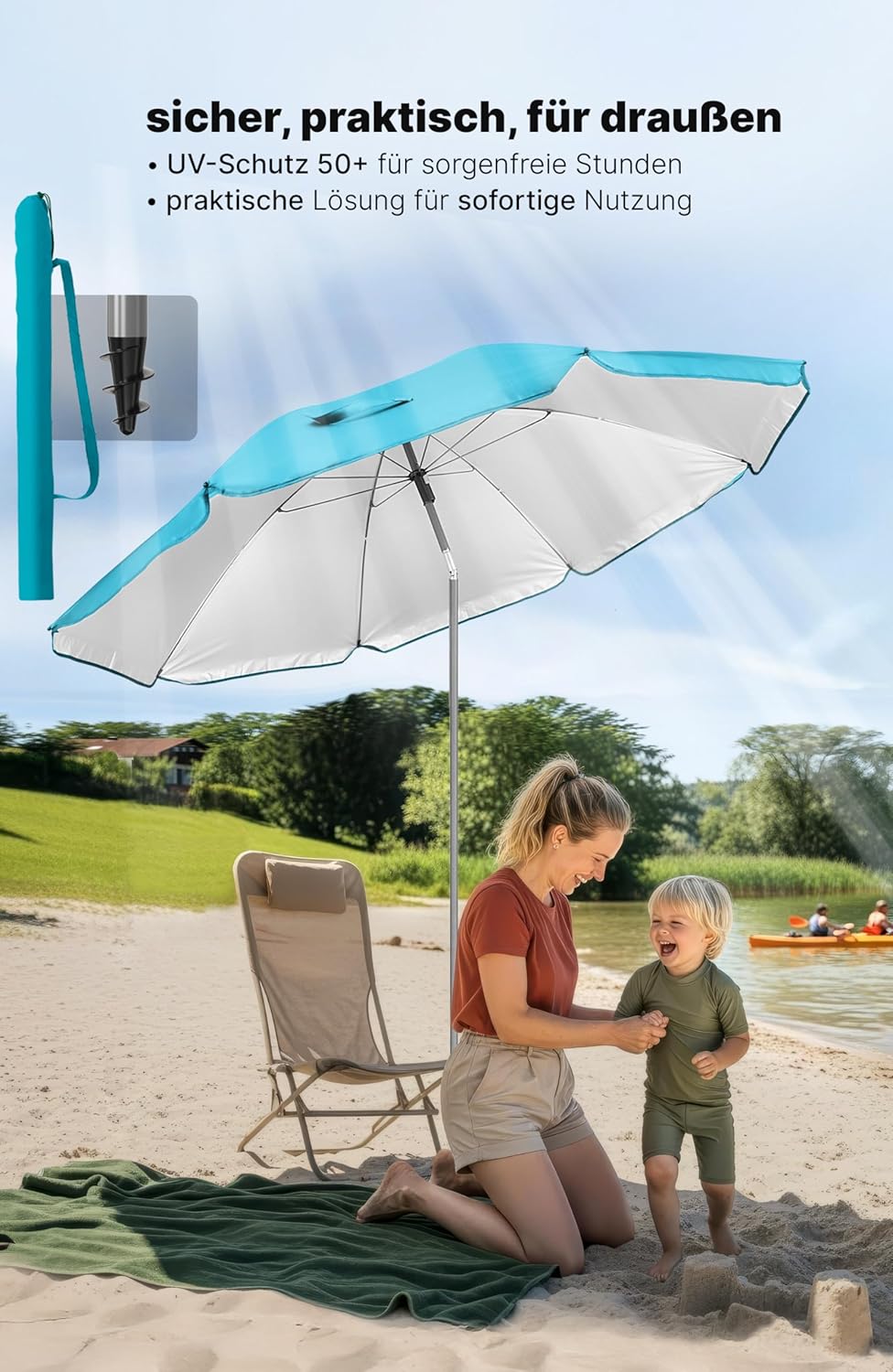 4smile Sonnenschirm Strand SunnyJoy - UPF 50+ Strandschirm Ø 180 cm, sicherer Sonnenschutz Strand, S