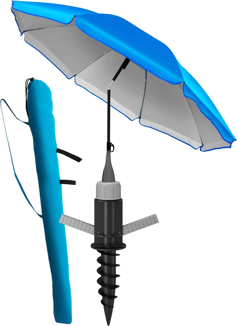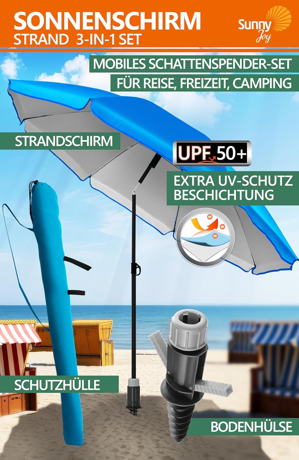 4smile Sonnenschirm Strand 3-IN-1 SET - UV50+ Strandschirm windfest stabil + Bodenhülse + Sonnenschi