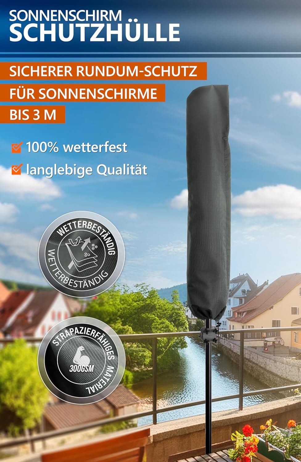 4smile Sonnenschirm Schutzhülle - für runde Schirme bis Ø 300cm, eckige bis 250x150cm- Sonnenschirmh
