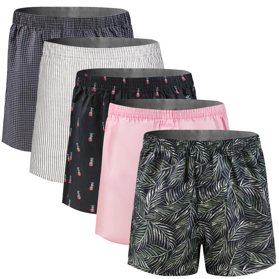 5Mayi Mens Boxers Shorts Multipack Woven Mens Underwear Pack Cotton Plaid Men's Boxers S A: Rosa 5er