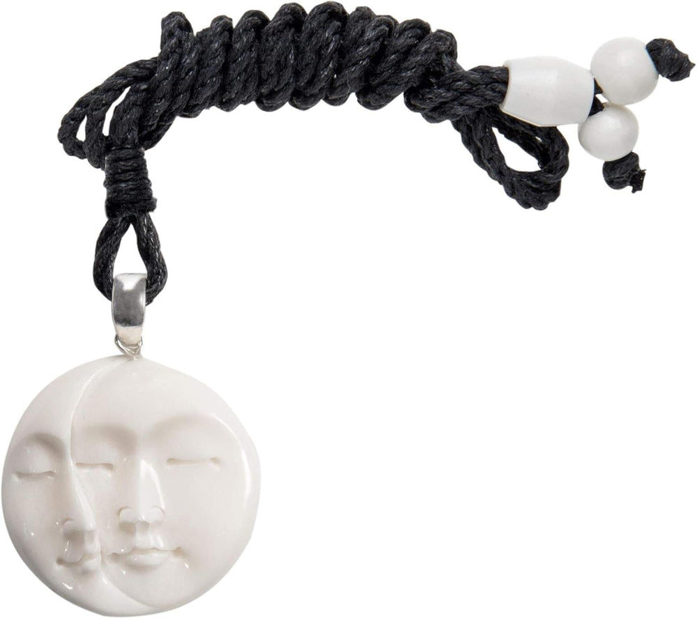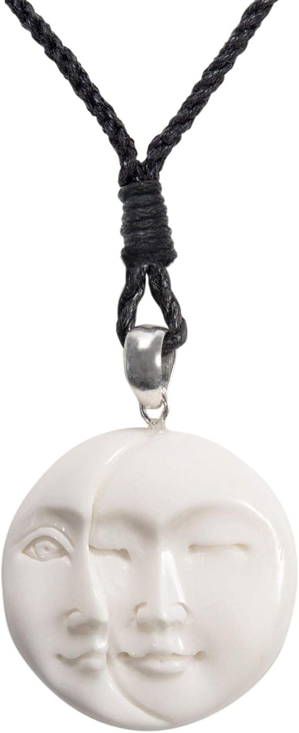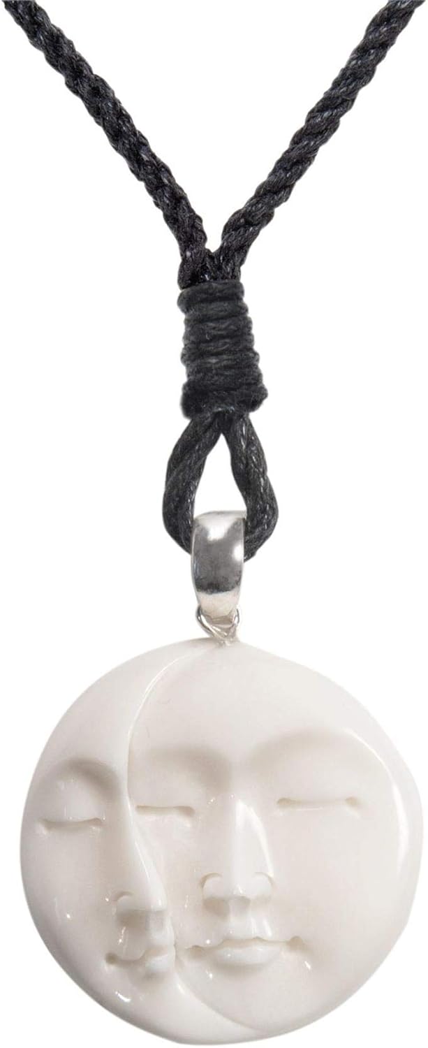 81stgeneration Frauen Männer Hand Geschnitzte Knochen Mondsichel Vollmond Gesicht Anhänger Halskette