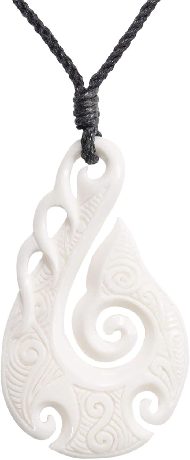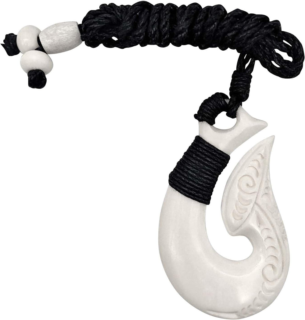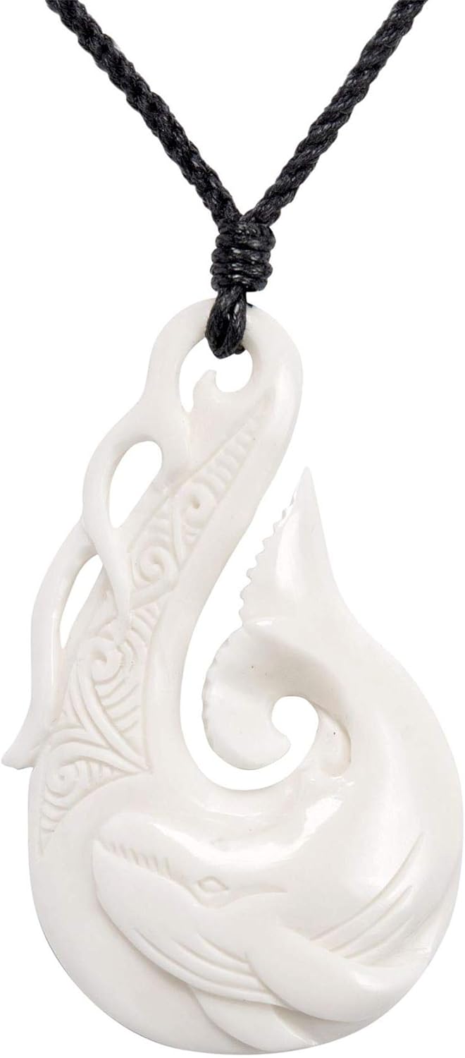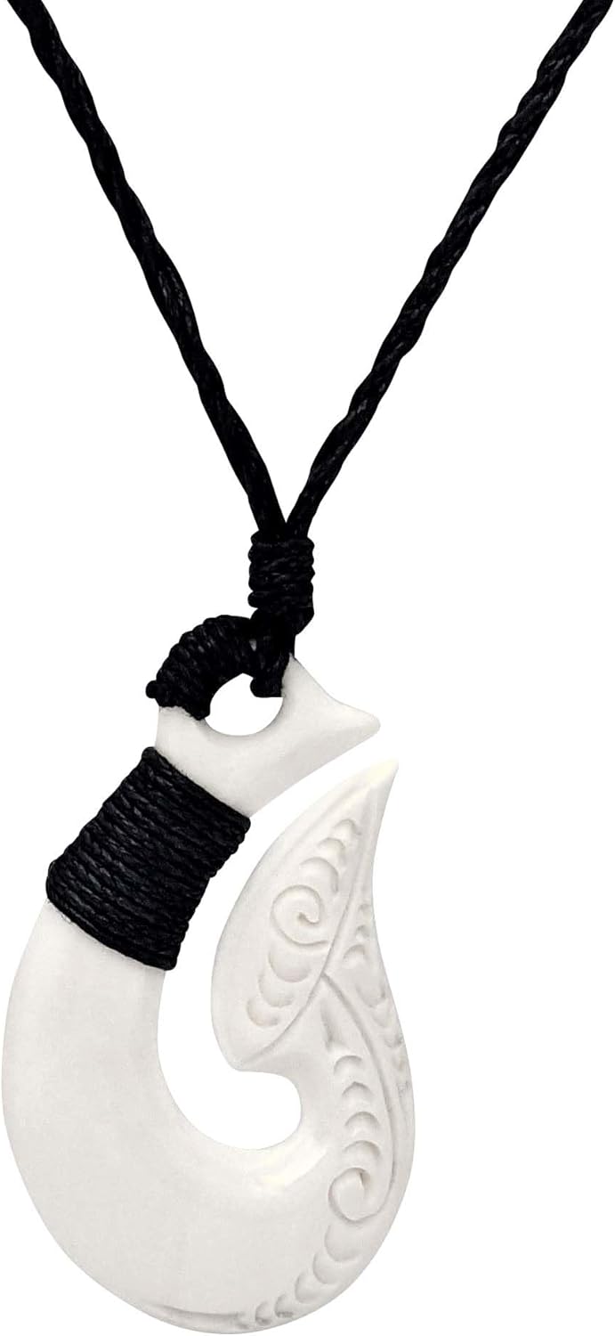 81stgeneration Damen Herren Geschnitzte Knochen Wellen Maori HEI Matau Angelhaken Anhänger Halskette