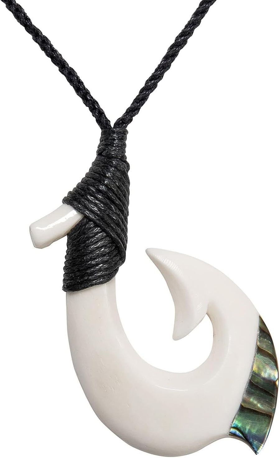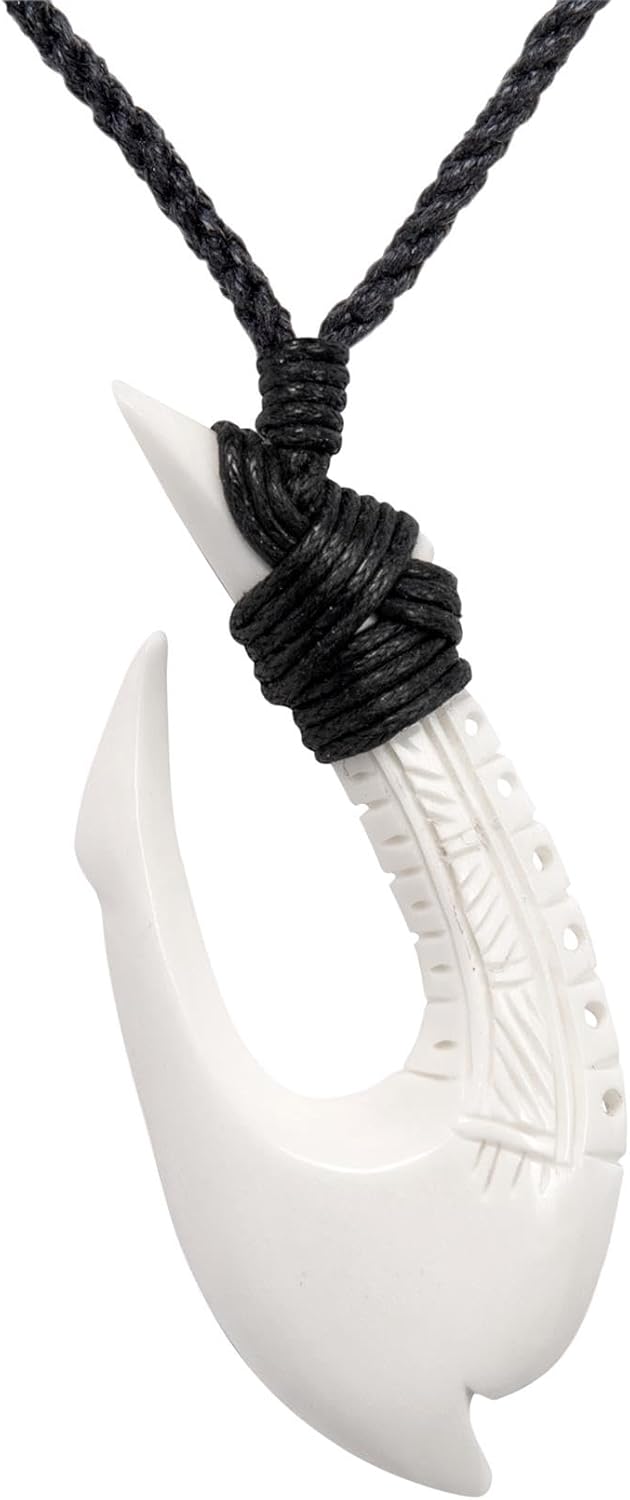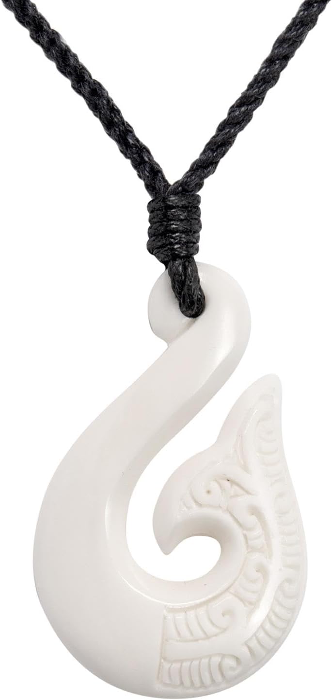 81stgeneration Damen Herren Geschnitzte Knochen Wellen Maori HEI Matau Angelhaken Anhänger Halskette