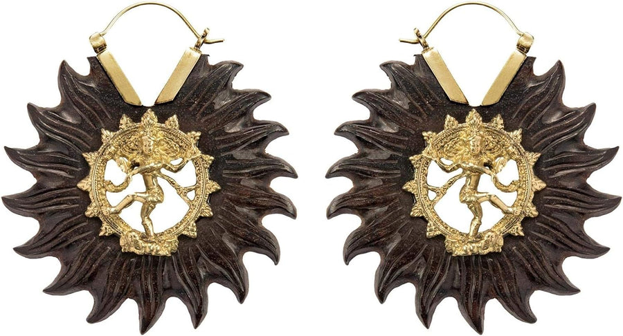 81stgeneration Damen Gold Messing Holz Shiva Tanzen Nataraja Sonne Ethnische Ohrhänger Ohrringe