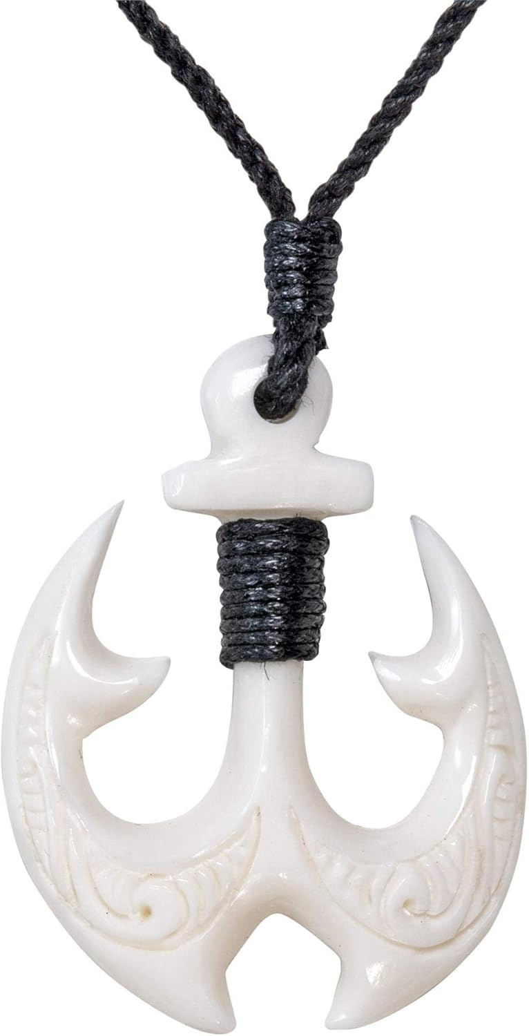 81stgeneration Frauen Herren Handgeschnitzter Knochen Maori Anker HEI Matau Anhänger Halskette