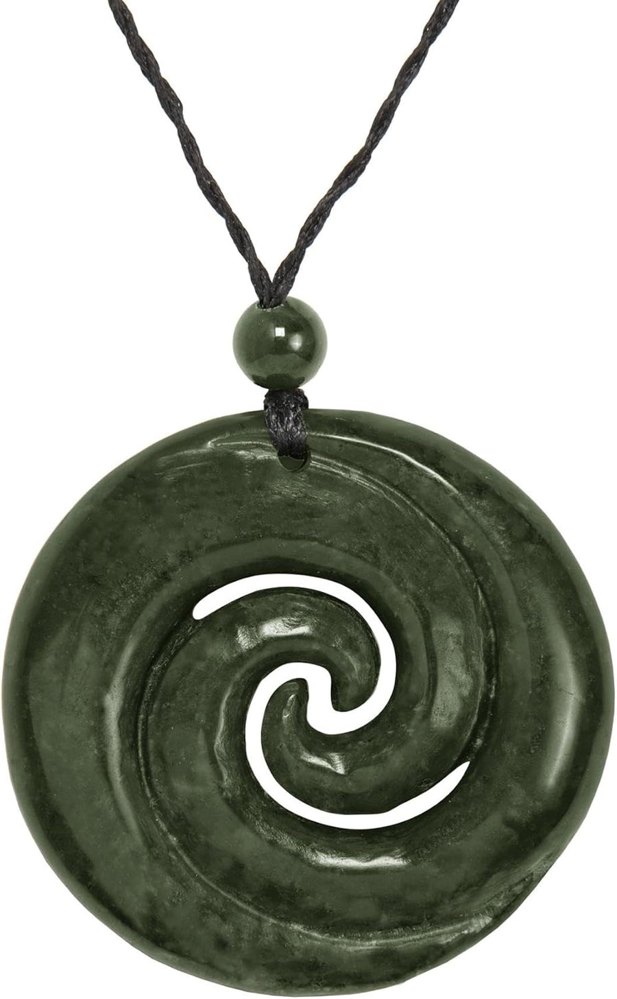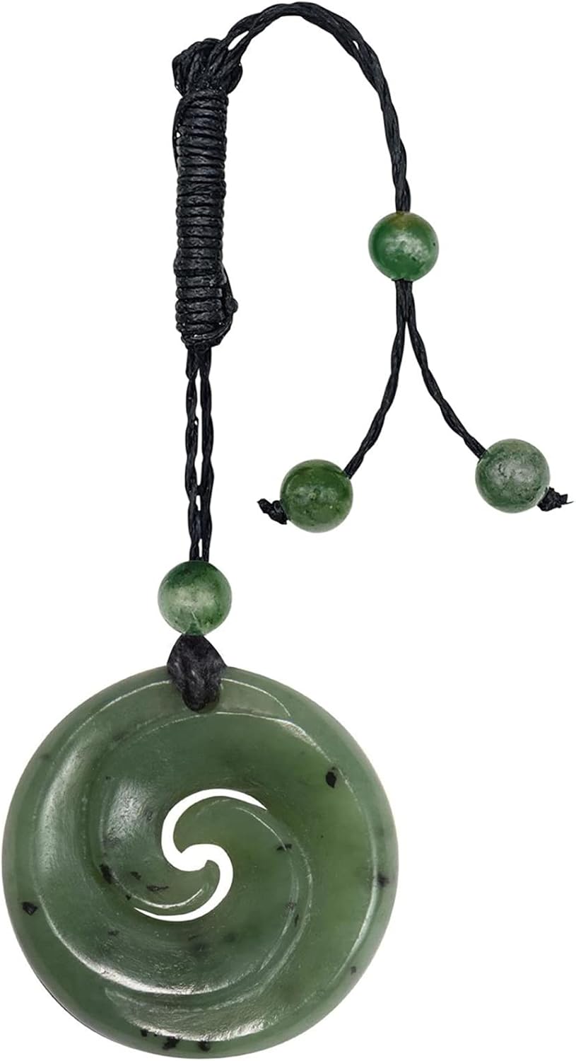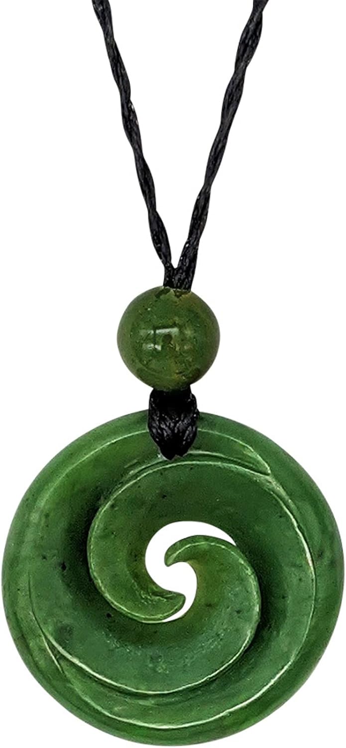 81stgeneration Unisex Geschnitzte Nephrit Jade Grünstein Maori Doppel Koru Kreis Anhänger Halskette