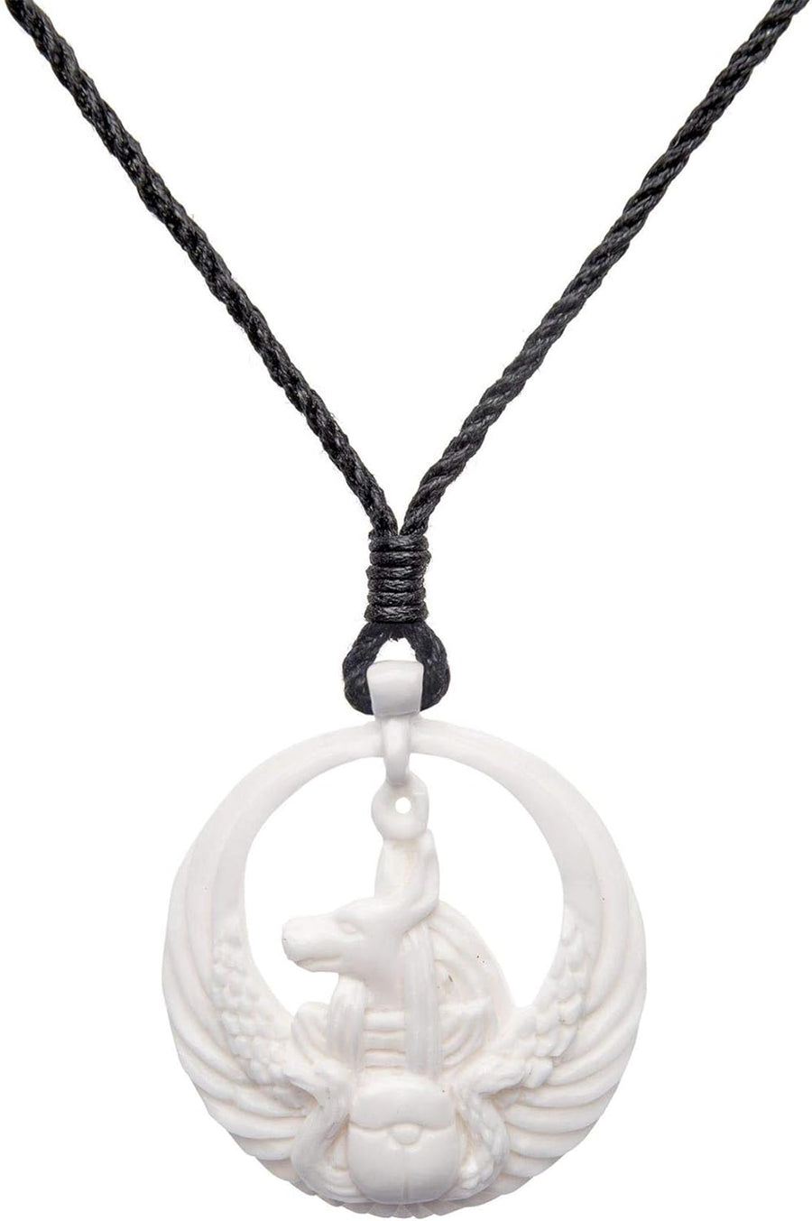 81stgeneration Frauen Männer Handgeschnitzt Knochen ägyptische Anubis Winged Anhänger Halskette