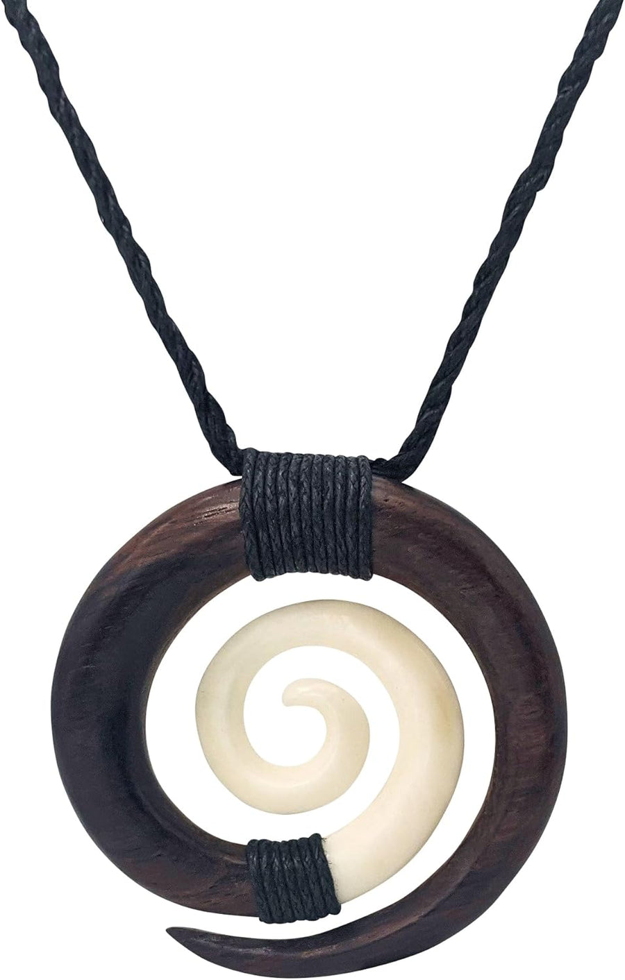 81stgeneration Anhänger Halskette Spirale Stammes Handgeschnitzter Knochen für Damen und Herren