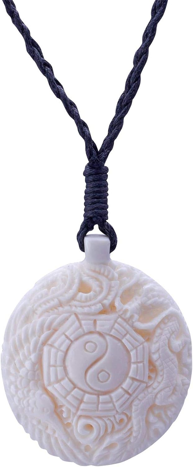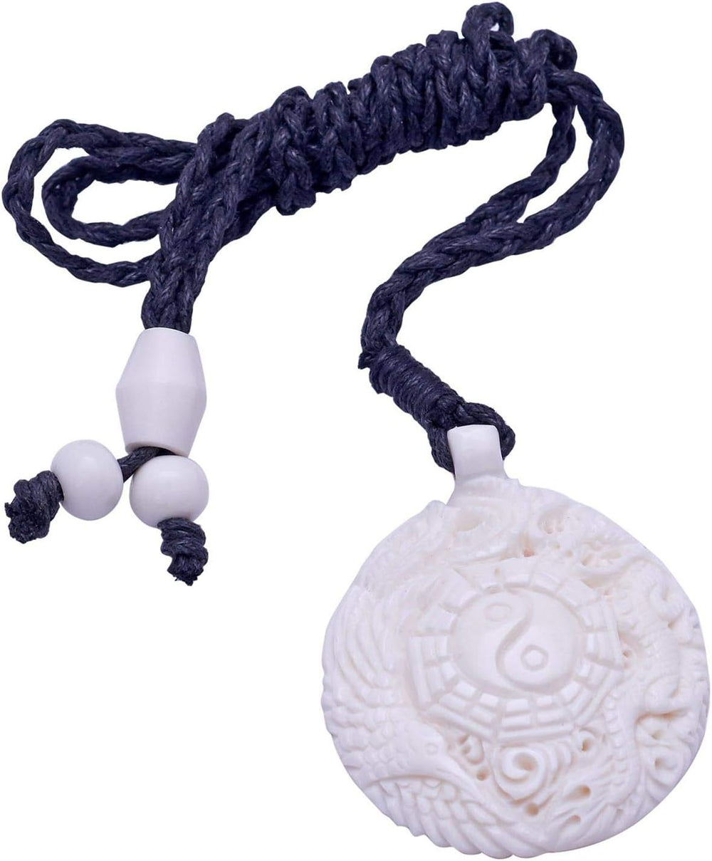81stgeneration Frauen Männer Handgeschnitzt Knochen Yin Yang Phönix Taoist Drache Anhänger Halskette