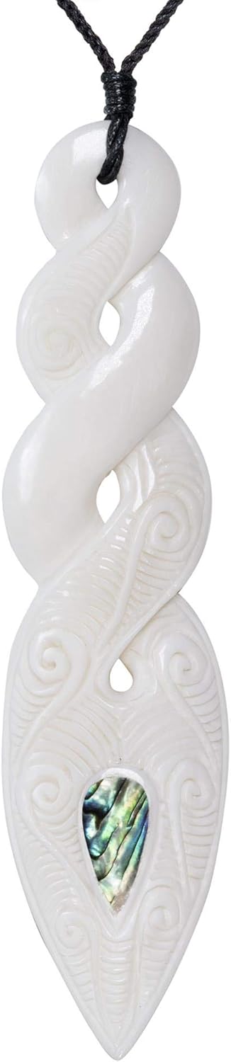 81stgeneration Frauen Männer Hand Geschnitzte Knochen Maori Pikorua Koru Paua Anhänger Halskette