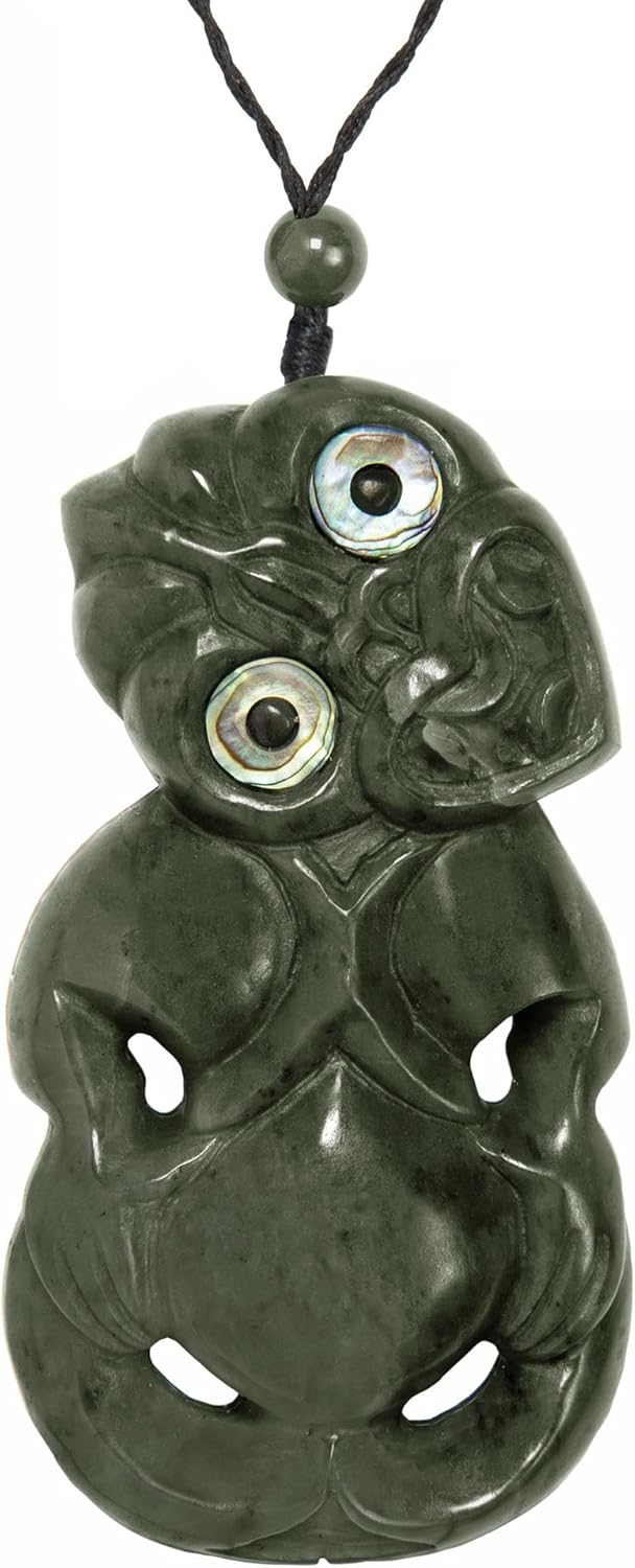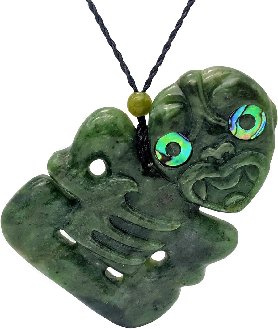 81stgeneration Anhânger Halskette Abalone Gross HEI Tiki Handgeschnitzte Nephrit-Jade für Herren