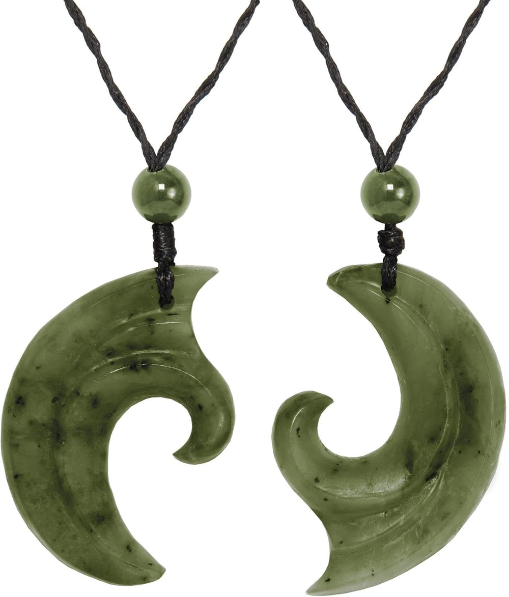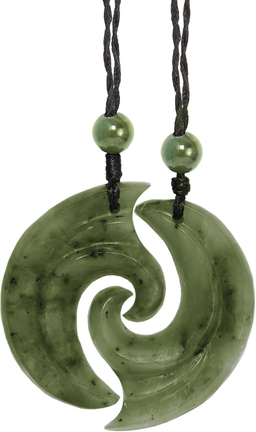 81stgeneration Anhânger Halsketten Set Verbunden Koru Geschnitzter Grünstein für Herren und Damen