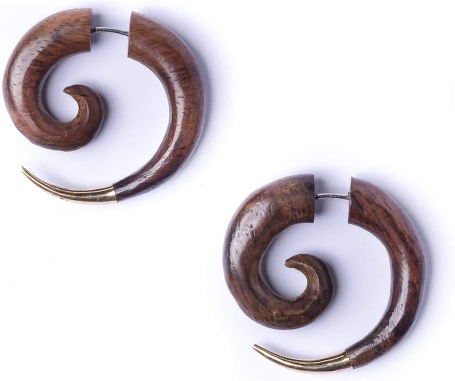 81stgeneration Holz GoldmessingSpirale Dehnungsstab gefälschte Bahre Paar Ohrringe Stammes