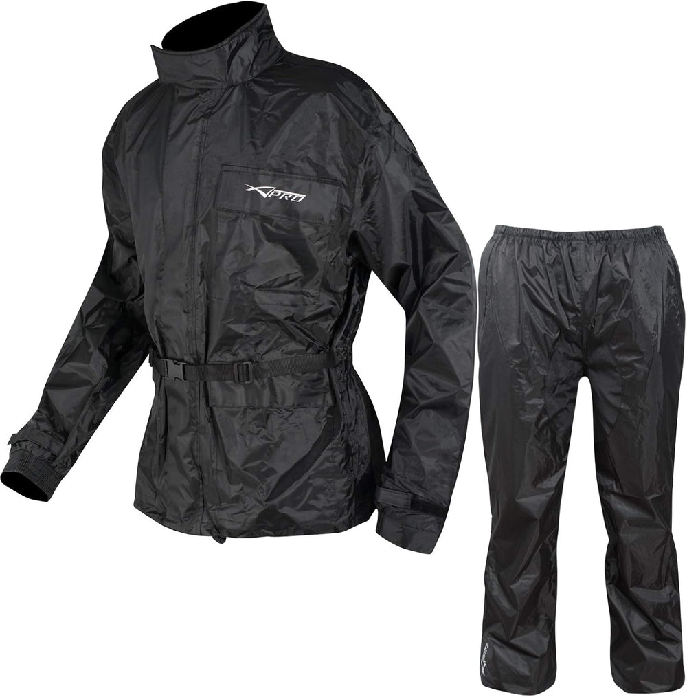 A-Pro Motorcycle Motorbike Waterproof Full Body One pc Rain Suit Scooter Black L