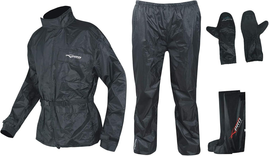A-Pro Ganzkörper Wasserdicht Regenanzug Handschuhe Stiefel Motorradkombi Schwarz 3XL 3XL Schwarz, 3X