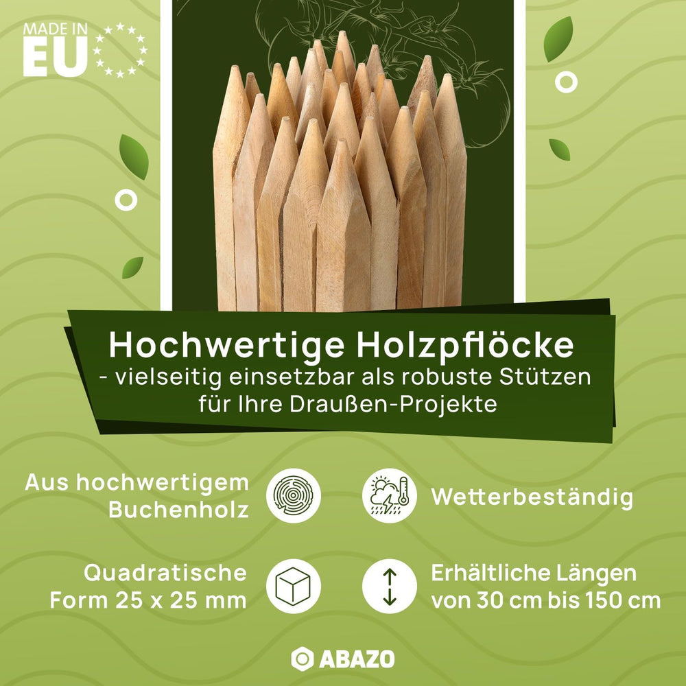 Buchenholz Holzpflöcke & Holzpfähle Quadratisch 25 Stück - Längen 30 cm - Ideal für Zaunpfosten, Zau